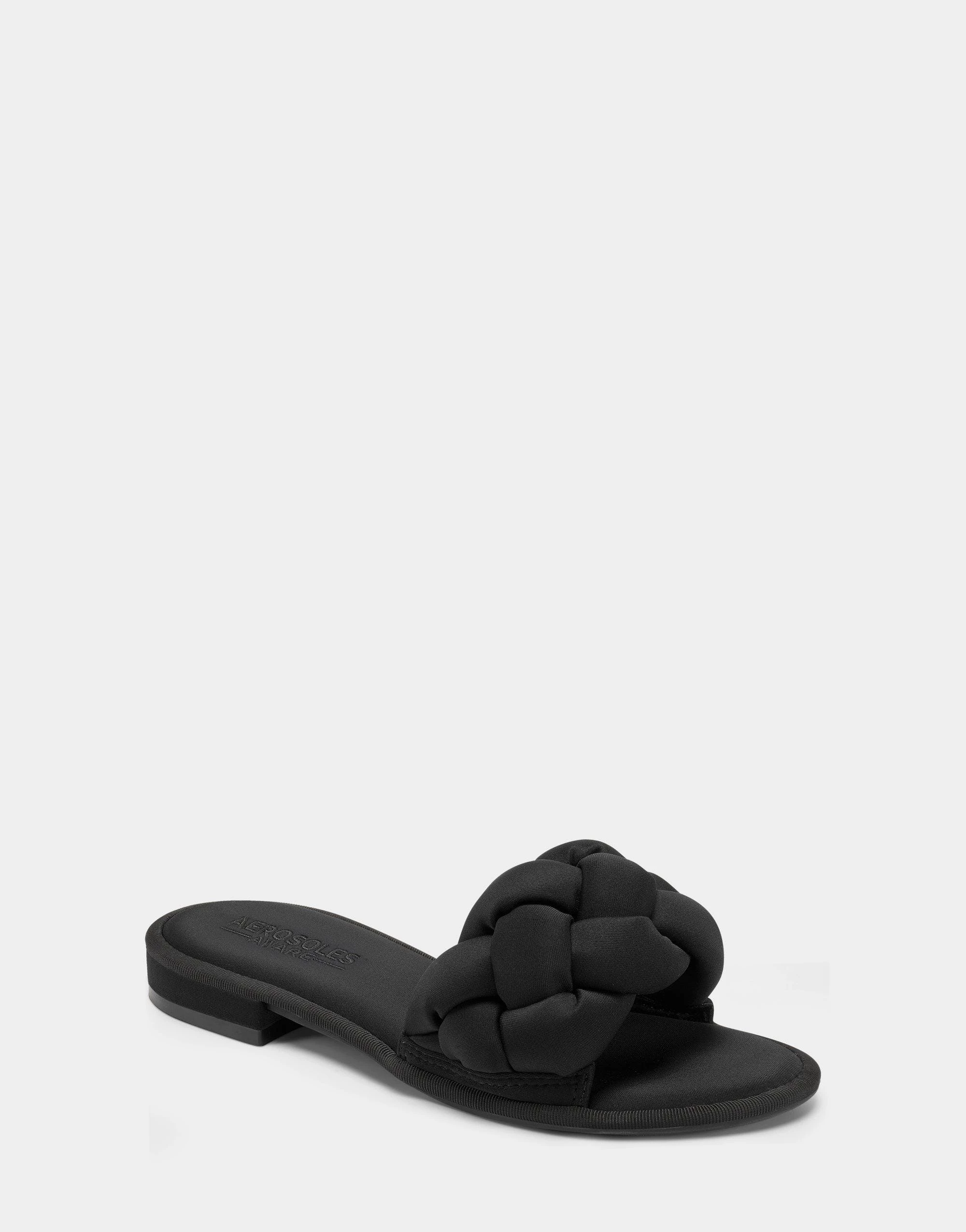 Braided neoprene fabric uppers invoke a dimensional effect on the Brad slide sandal—a sophisticated warm-weather style essential. A memory-foam footbed and low heel ensure instant comfort.