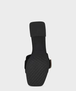 Golden opportunity: A polished buckle adorns the evvie, this statement-making sandal finished with bold block heels. Ideally suited to trousers, dresses and skirts—the possibilities are endless.