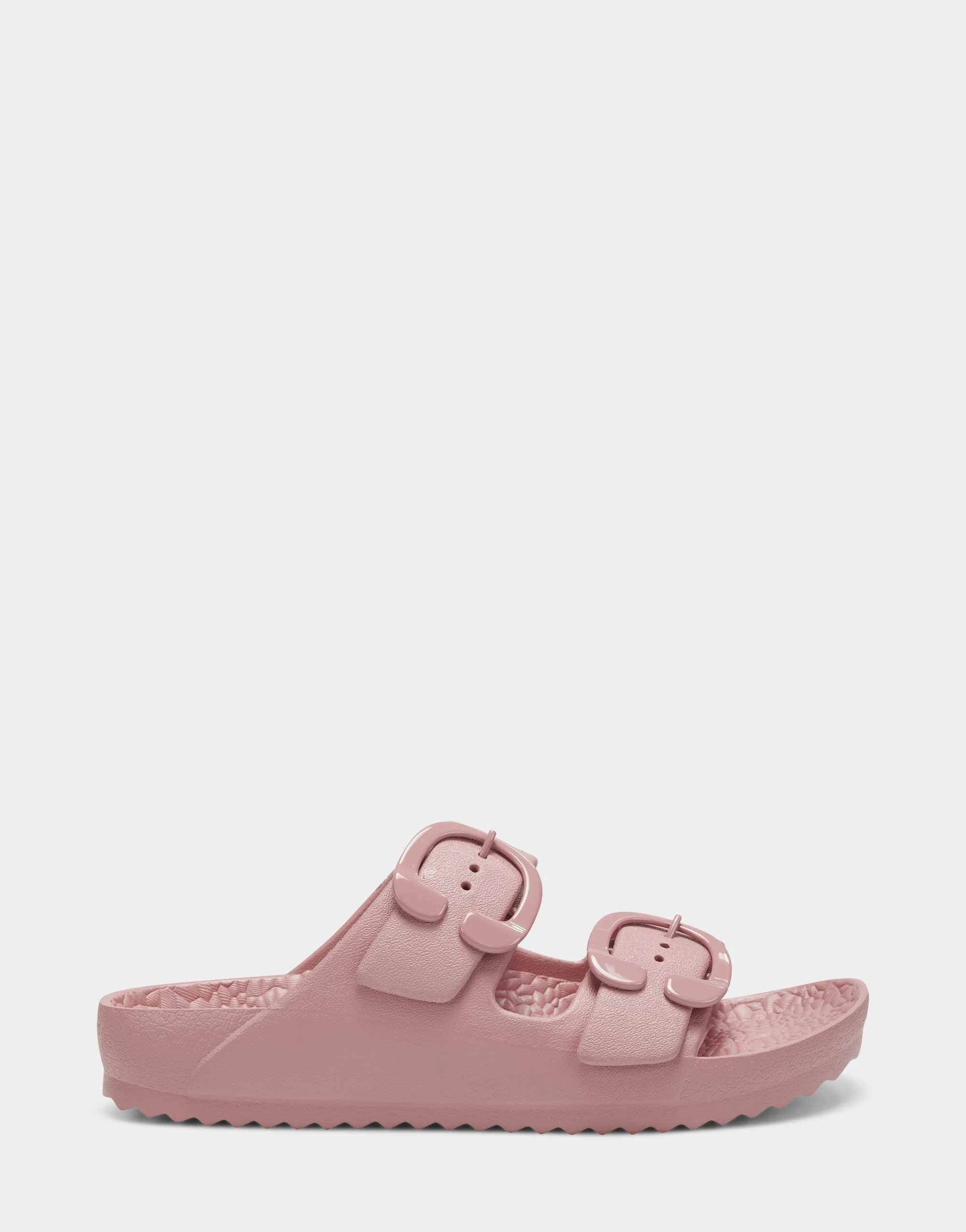 Oversized new signature buckles make this timeless, trendy and water-resistant molded slide this season’s essential. A molded footbed and slip-on design ensure unlimited comfort and ease of wear, making it a go-to look for your off-duty style.