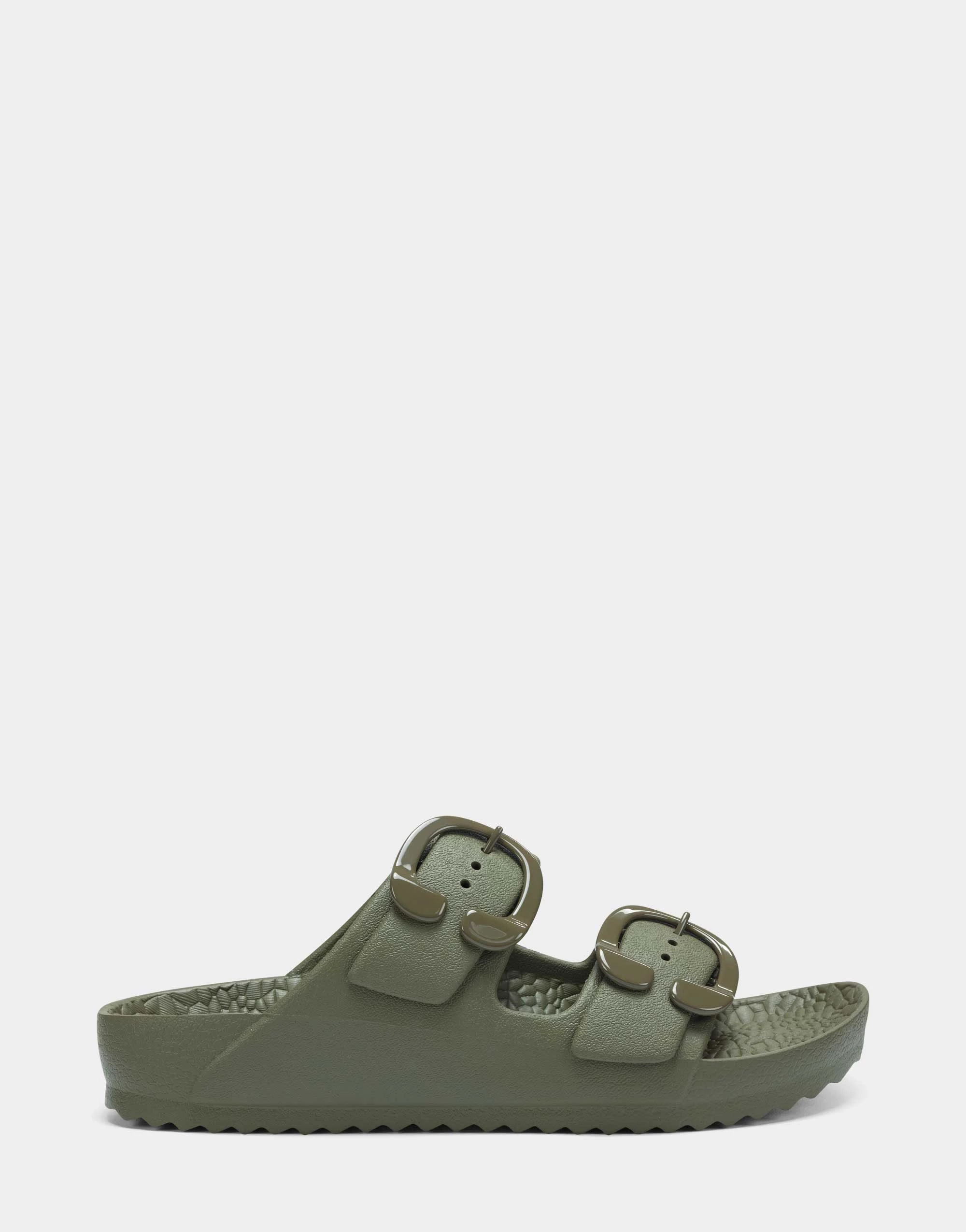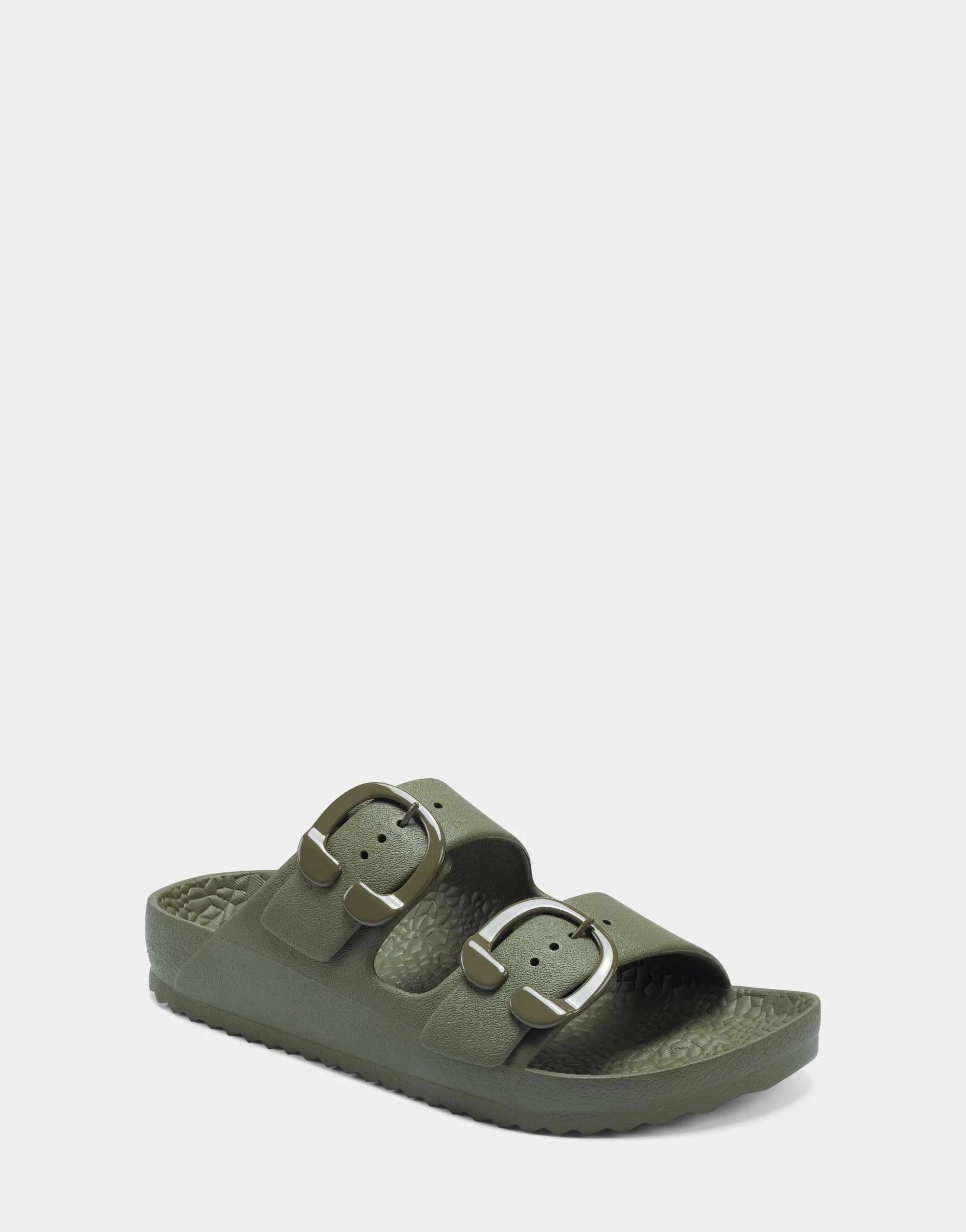 Oversized new signature buckles make this timeless, trendy and water-resistant molded slide this season’s essential. A molded footbed and slip-on design ensure unlimited comfort and ease of wear, making it a go-to look for your off-duty style.a
