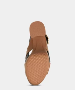 Make a statement and flaunt these platform sandals in acid wash denim. Our signature buckle on the adjustable ankle strap and flaired heel add that extra touch of chic.