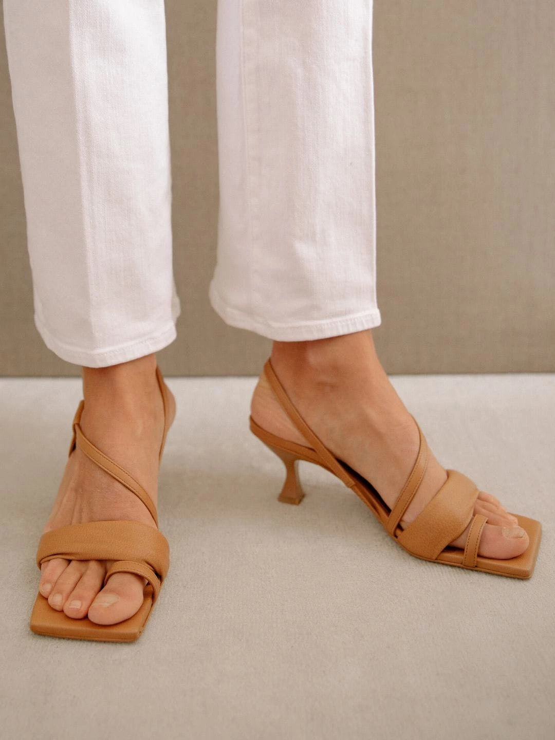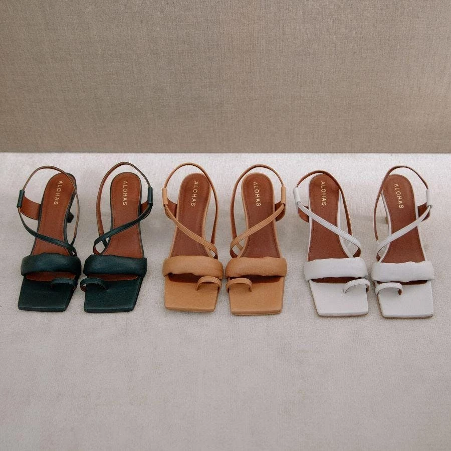 The Asymmetric Straps Camel’s caramel colored hues make them seem almost edible. These ethical sandals have the perfect balance between chunky and thin straps: a toe strap for front support, a thick instep strap for added flattery, and a thin strap from across the instep to the heel offering side support.