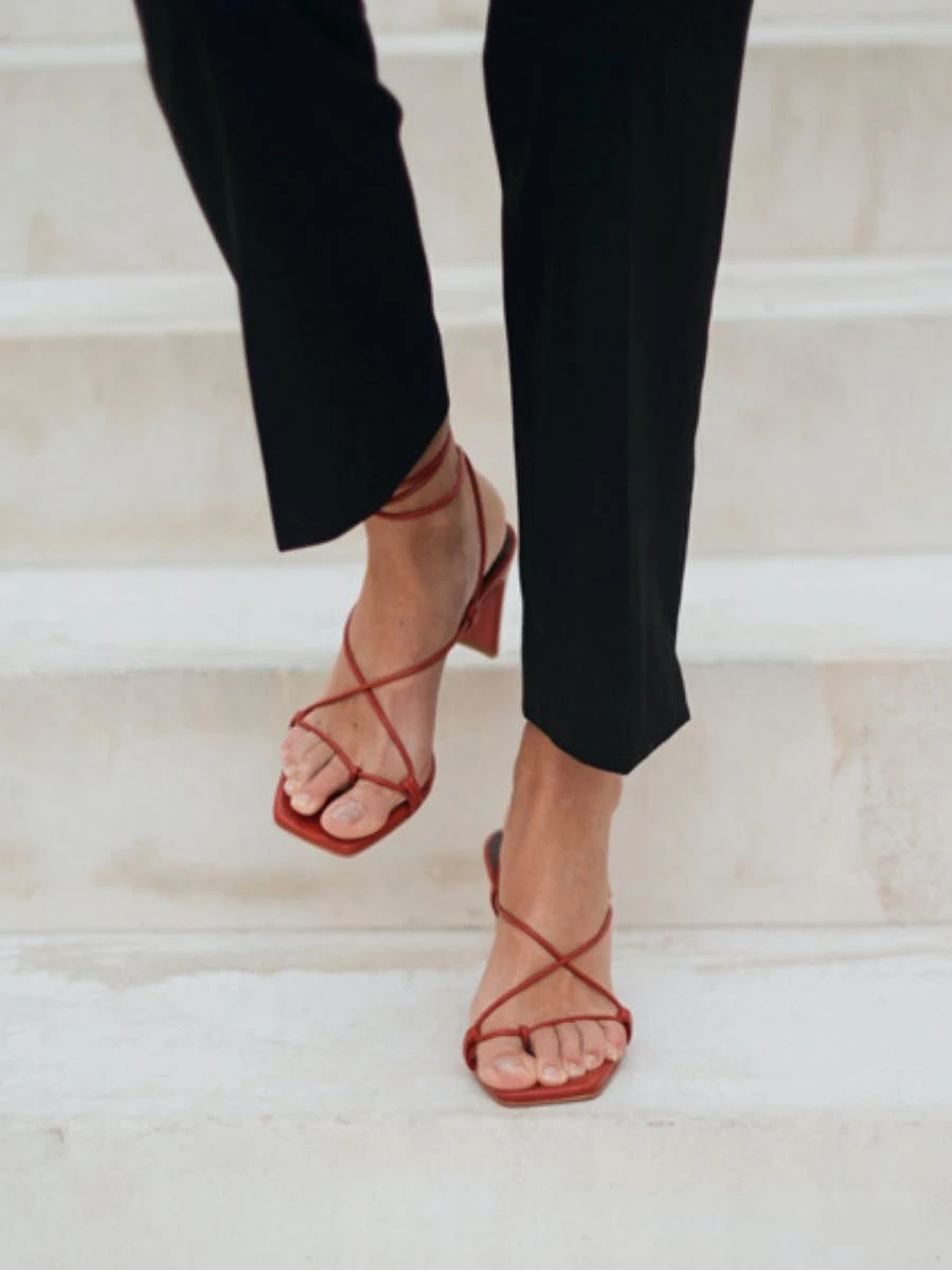 nspired by a classic feminine silhouette, our newest arrival, the Bellini Sandals represent the ultimate combination of glamour and comfort. Made by hand in Spain and crafted in soft leather, this lace-up style wraps around the ankle in a barely there delicate sandal that is perfect for any special occasion.