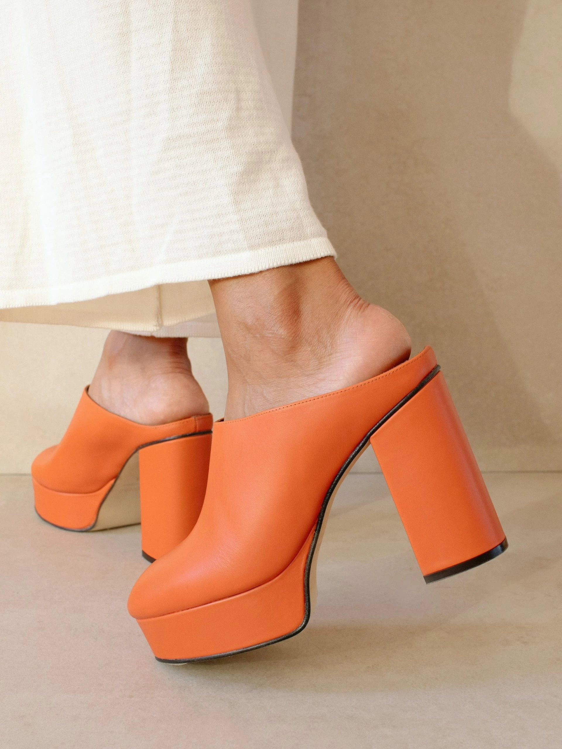 Day to night or straight to the fun part of your day. Chunky high heeled sandals featuring an open back. Front platform provides extra balance.