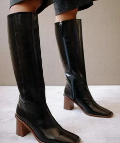 The iconic must-have high knees, now crafted from bold and bright leather. These timeless tall boots feature a squared toe and a side zipper for extra comfort. Their elongated block heel adds flattery and pizzazz to your strut. Expand your footwear rotation with a glamorous pair of East and take on colder days in style.