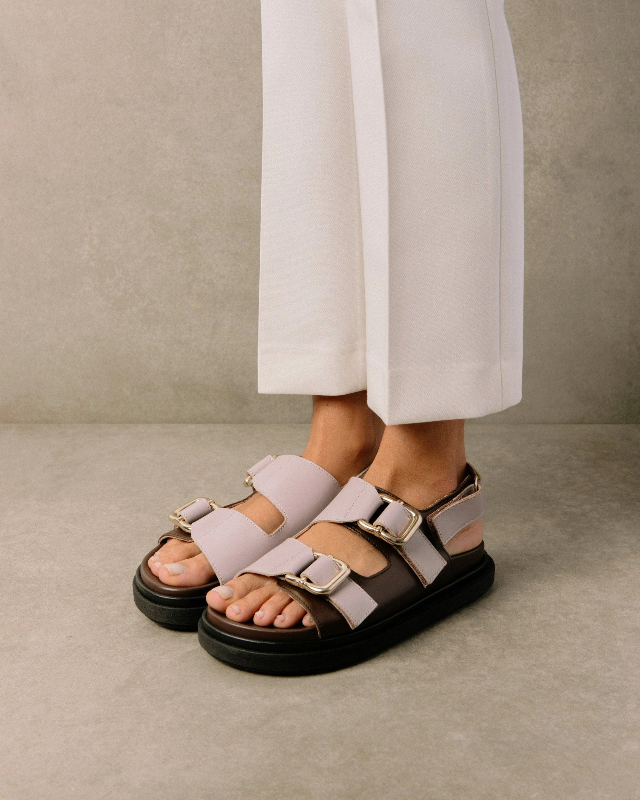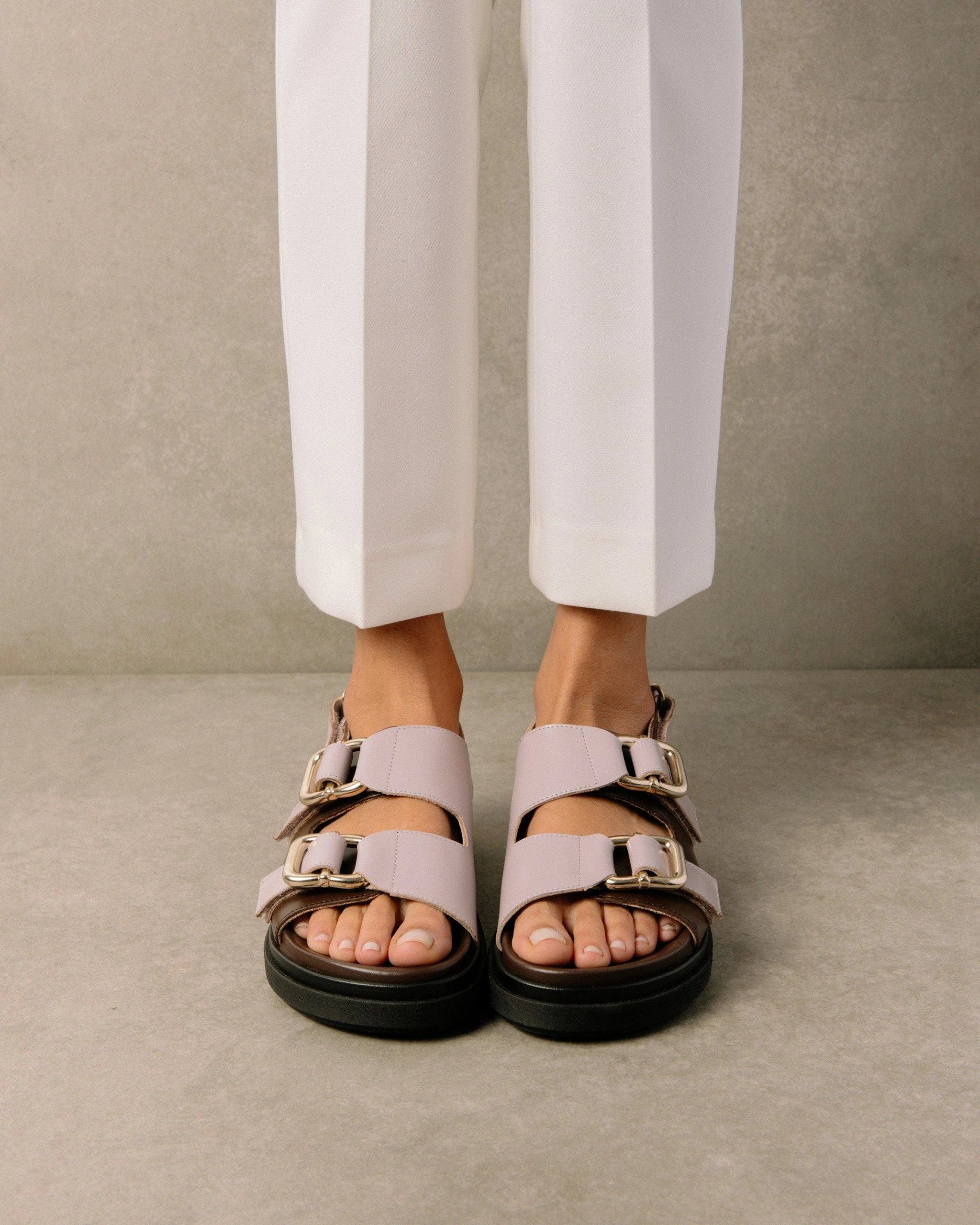 Buckle up! These Leather Slingback Sandals will take your summer style to new fashion destinations. The Harper has molded footbeds and raised rubber soles. The slingback silhouette ensures a comfortable fit, while the gold-tone, statement-making hardware crown the thick straps for a refined finish.