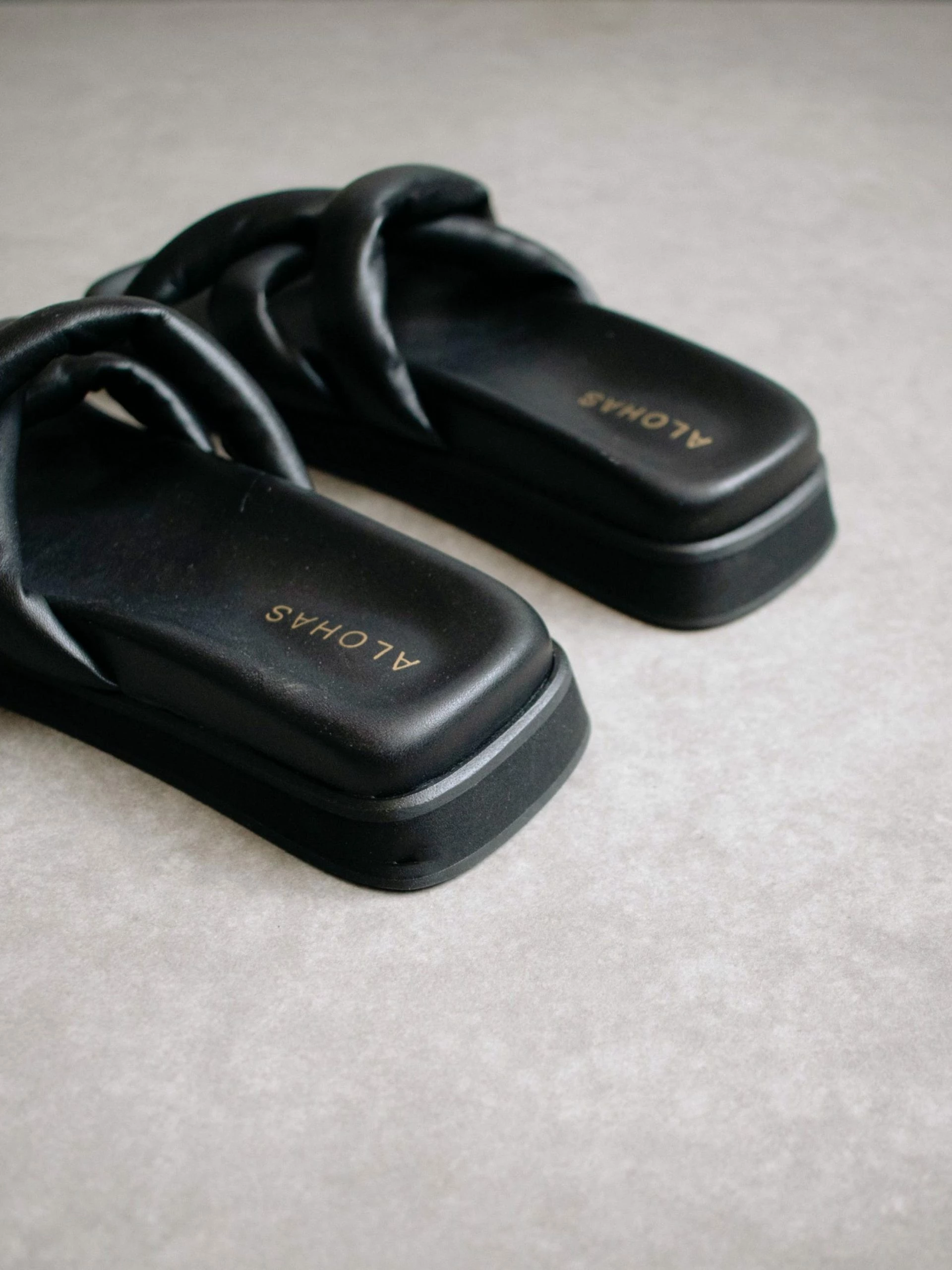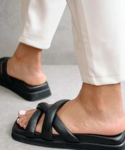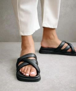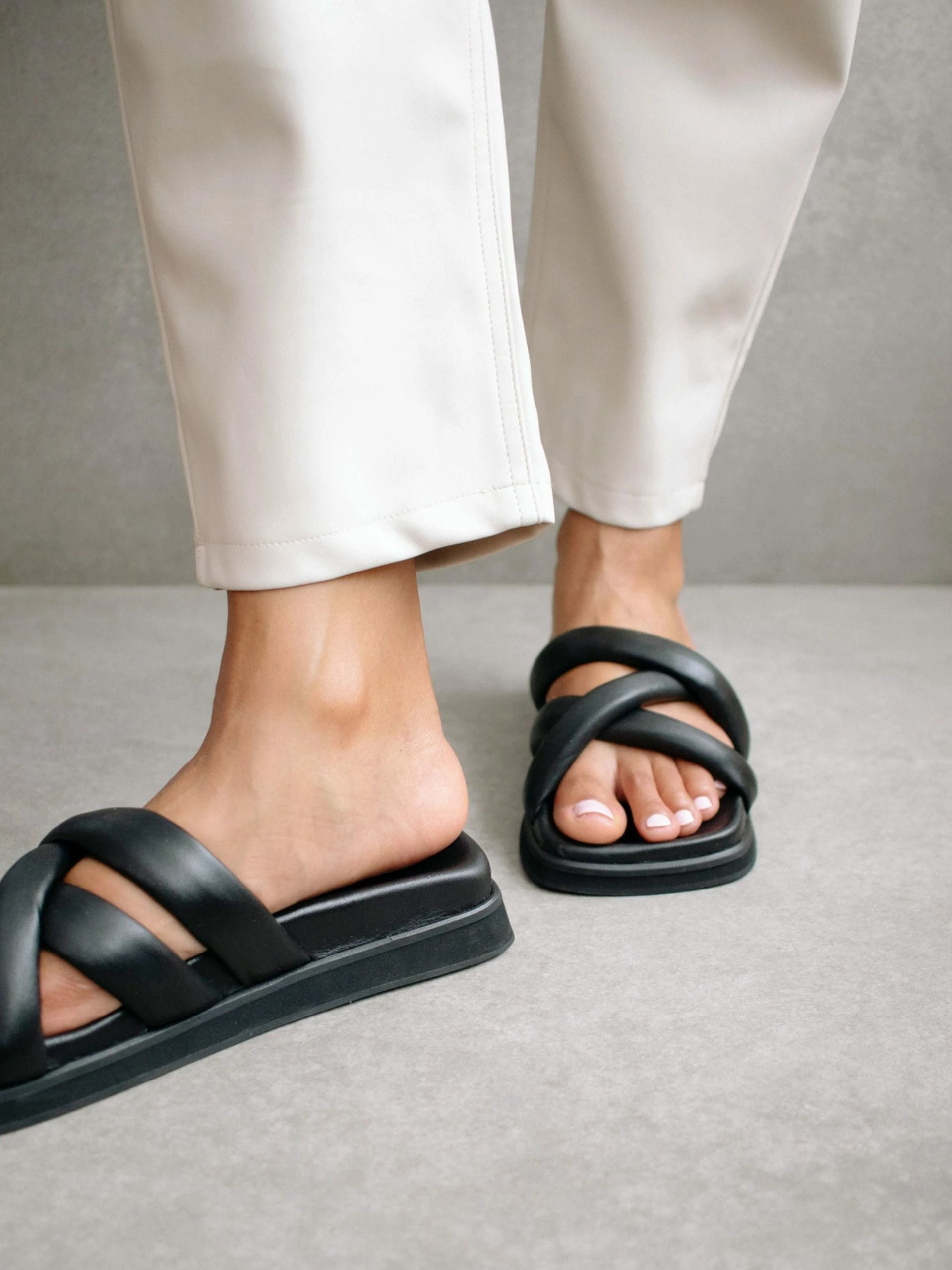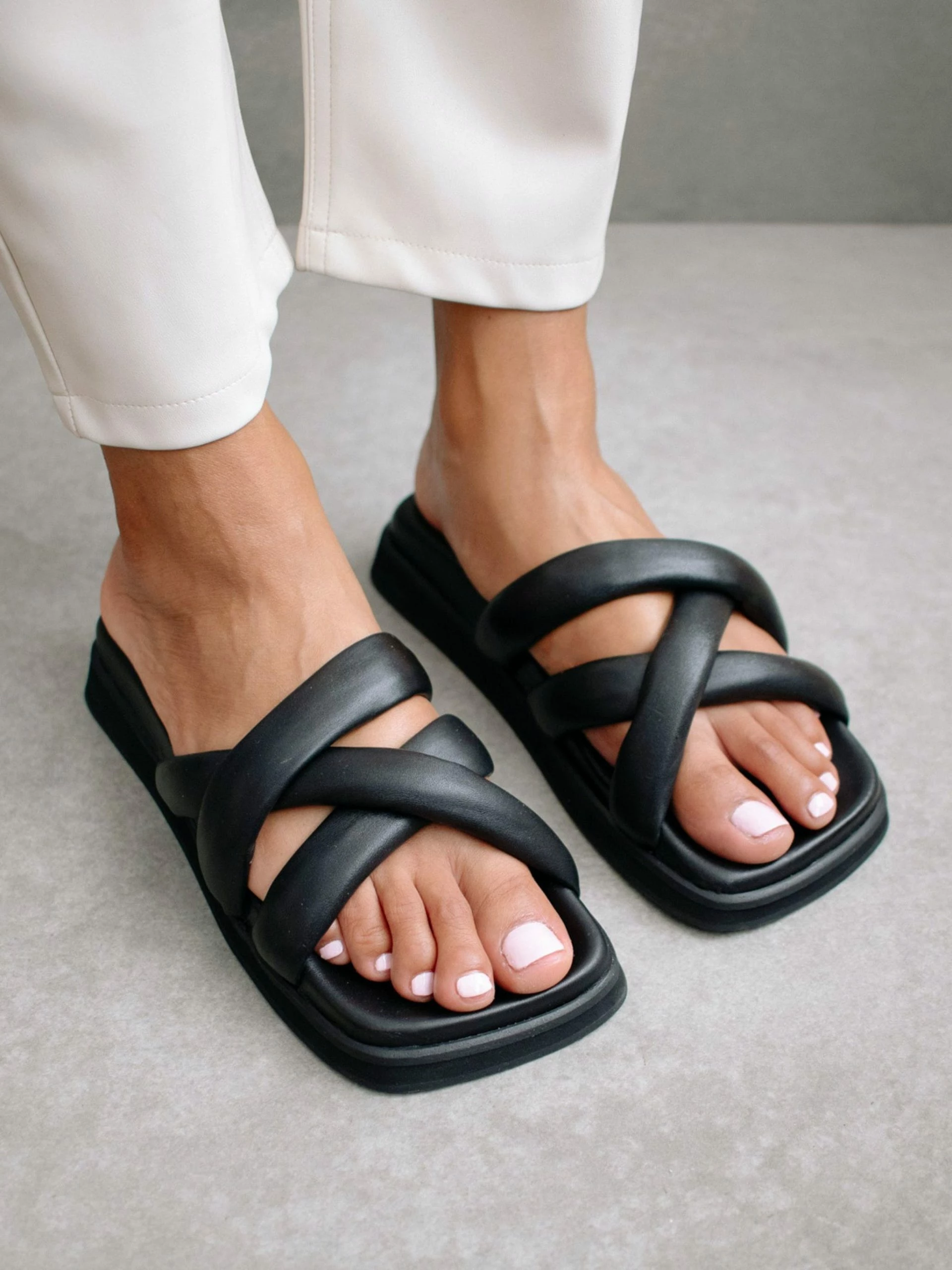 Square soled, open toed sandal offering a relaxed summer style. Three criss crossed straps for added comfort and plenty of breathing room.