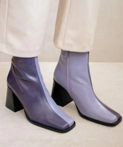 Always at odds between two shades of the same color? Then have both! These ankle height lilac boots have a square toe and block heel, but their most iconic characteristic is their two shades of lilac half and half aesthetic. Also featuring a wooden block heel and a side zipper for extra comfort.