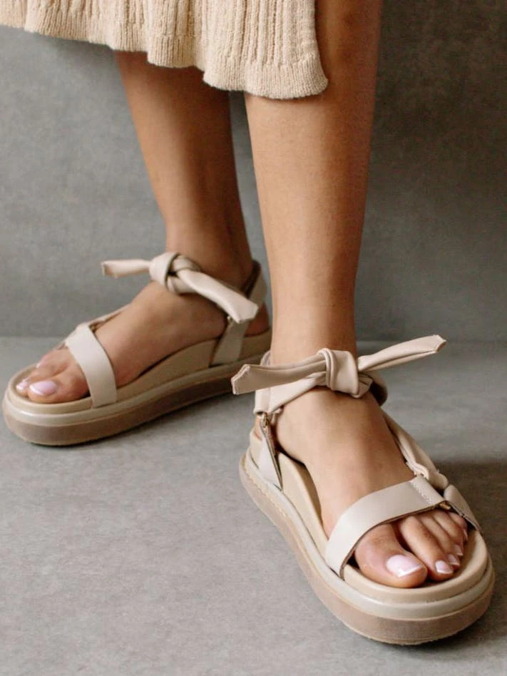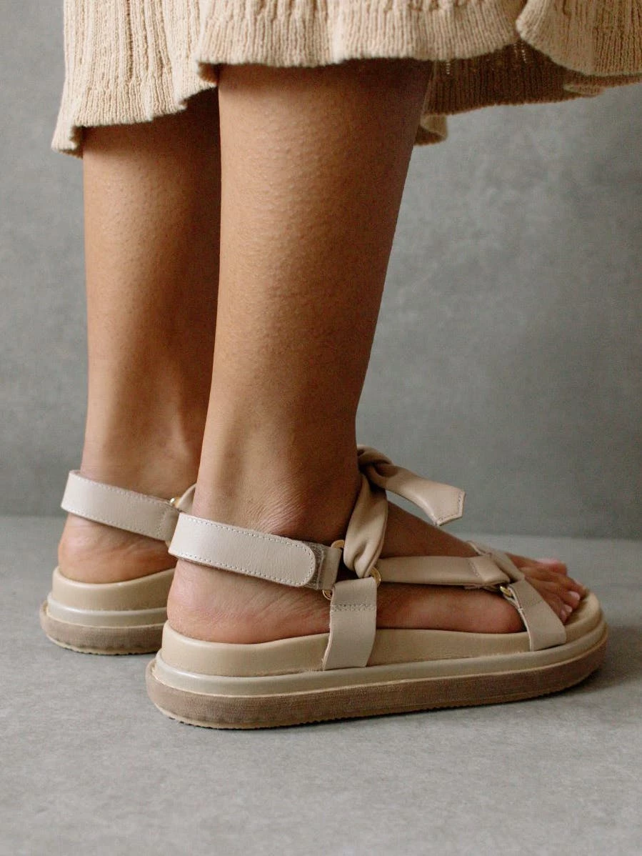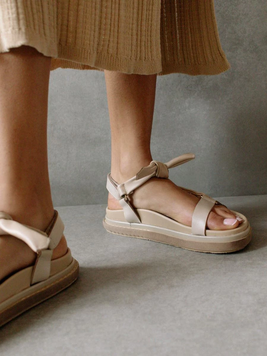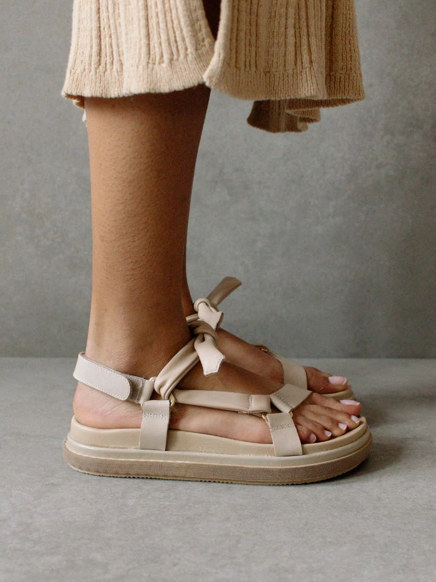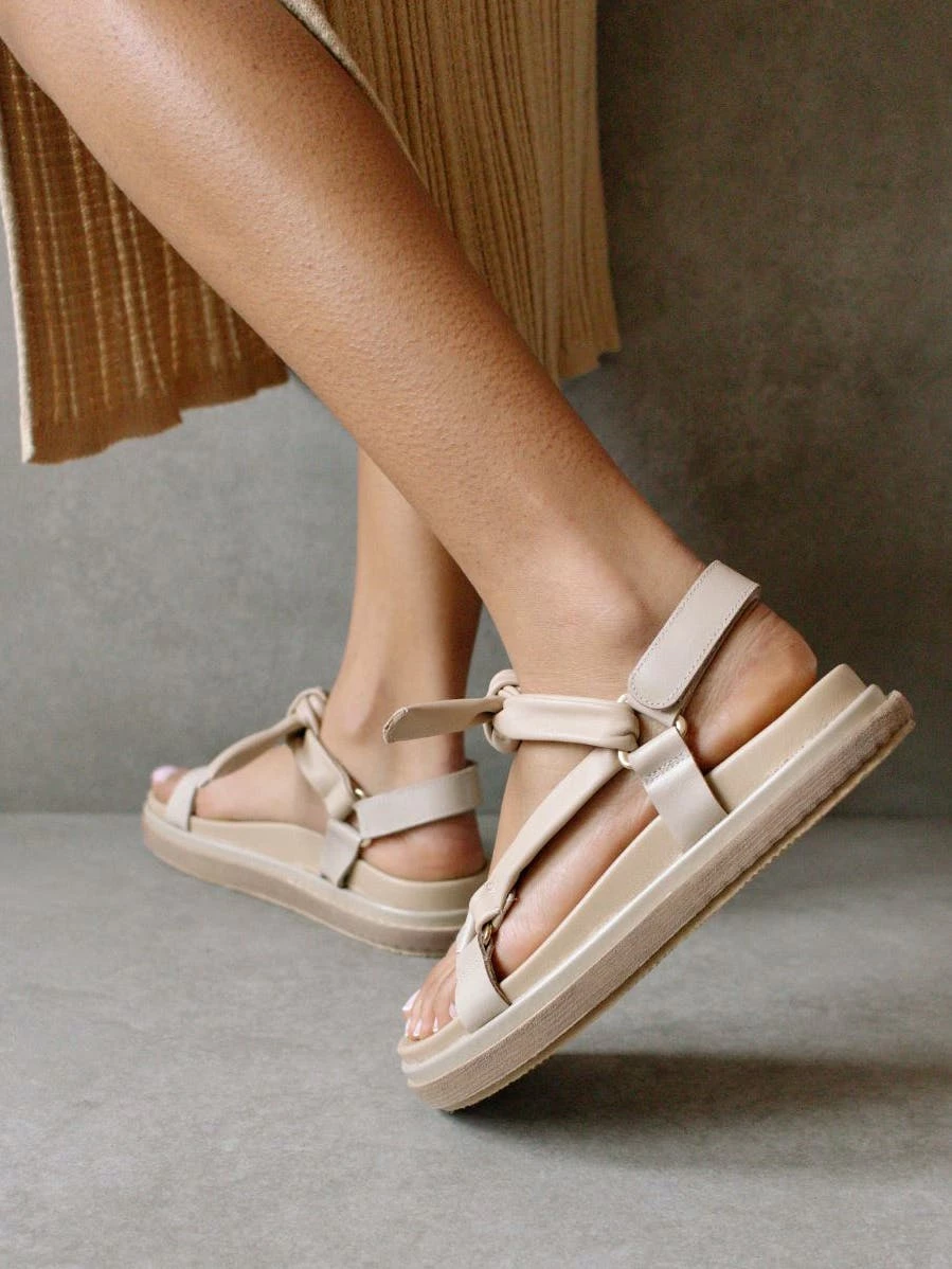 90s-inspired leather sandals featuring wide criss-cross straps that provide the perfect grip.