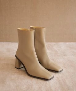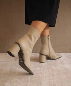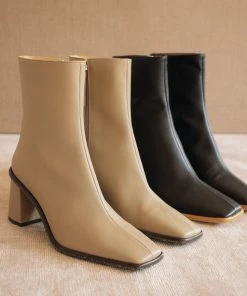 A slim-line silhouette ankle boot, featuring a sculptural block heel made of recycled materials. All in all, a must-have piece compatible with anything from pencil skirts to jeans.