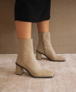 A slim-line silhouette ankle boot, featuring a sculptural block heel made of recycled materials. All in all, a must-have piece compatible with anything from pencil skirts to jeans.