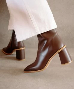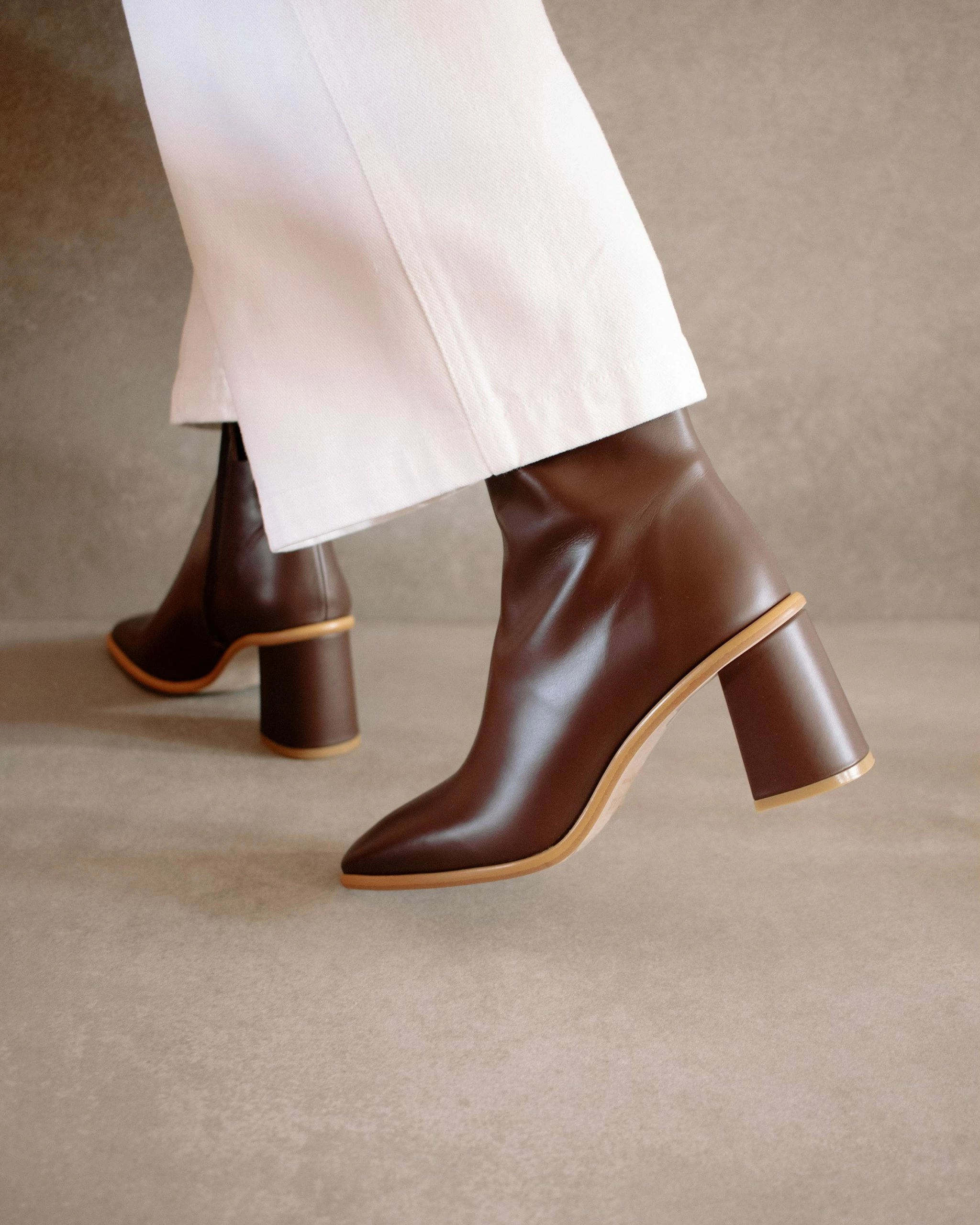 A slim-line silhouette ankle boot, featuring a sculptural block heel. All in all, a must-have piece compatible with anything from pencil skirts to jeans.