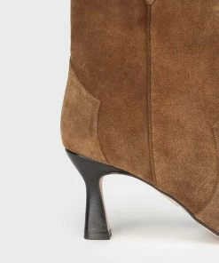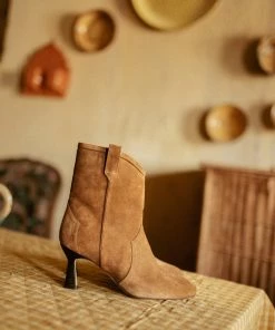 Iruya, a boot with a flared heel: a meeting between the folk and bohemian universe. A mix that results in a suede calfskin boot that is easily associated with a long dress or with cigarette pants.