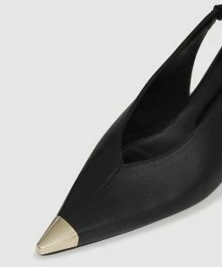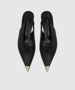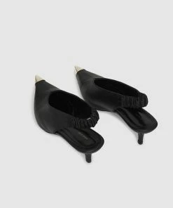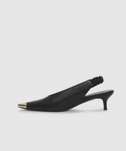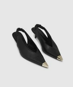 The Nina Heels are made from smooth 100% cow leather in black. This day-to-night pair features a pointed toe accented with a gold metal cap, ruched slingbacks to comfortably secure your foot, and a tapered heel for a touch of height. Take your true size. If you are between sizes, recommendation of taking the next size up.