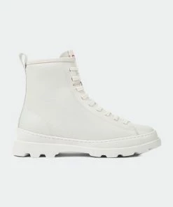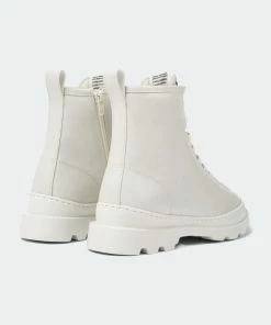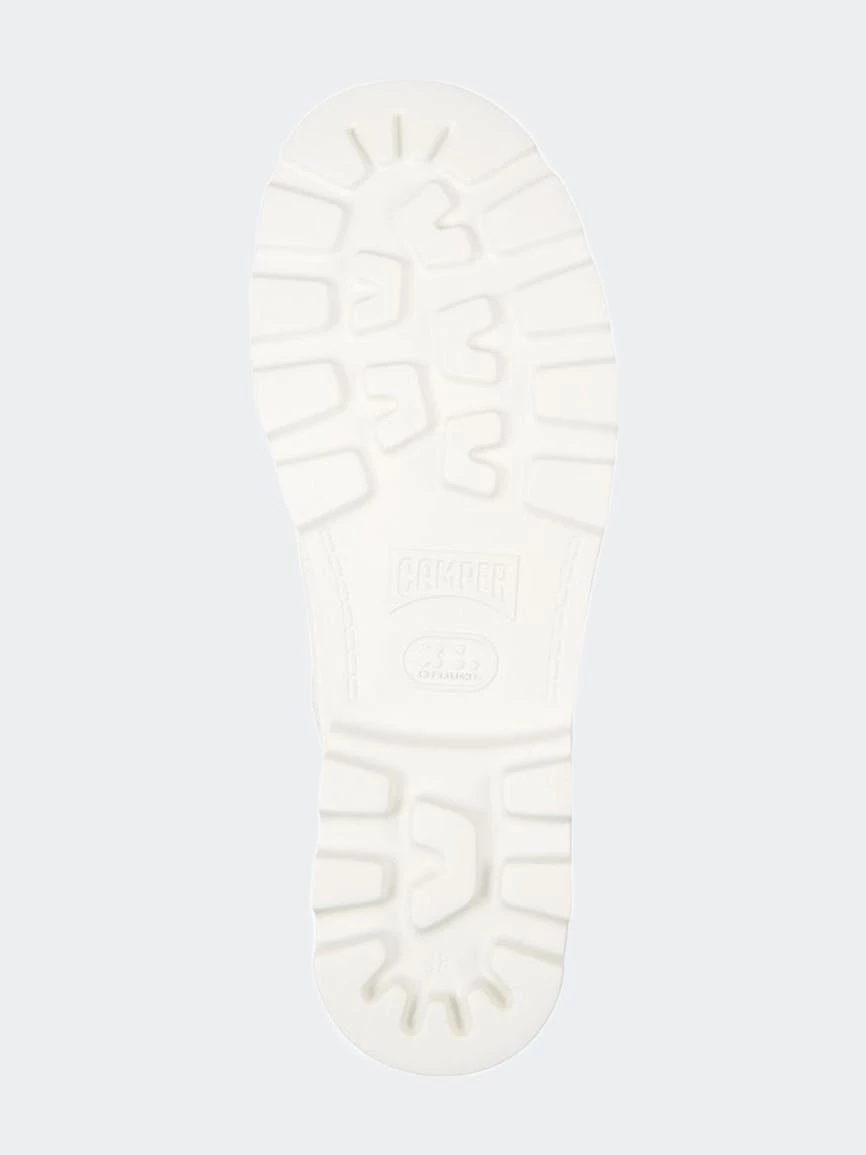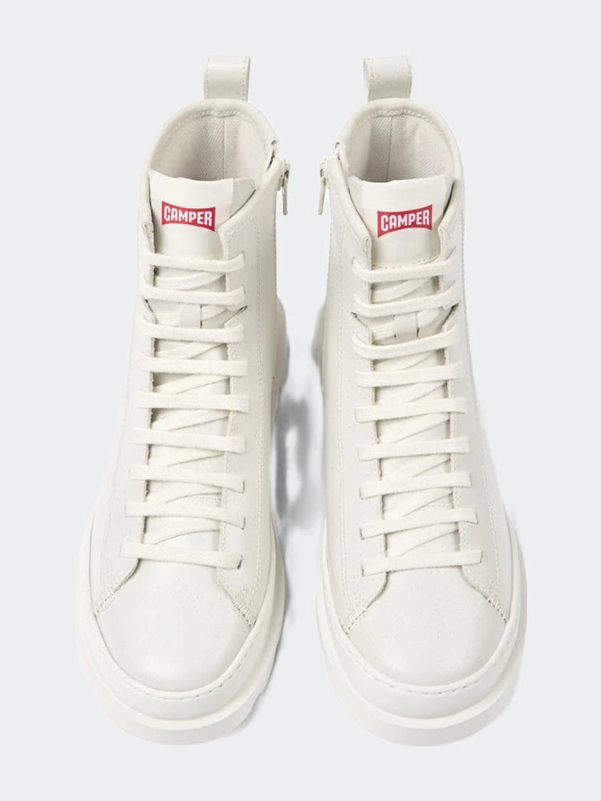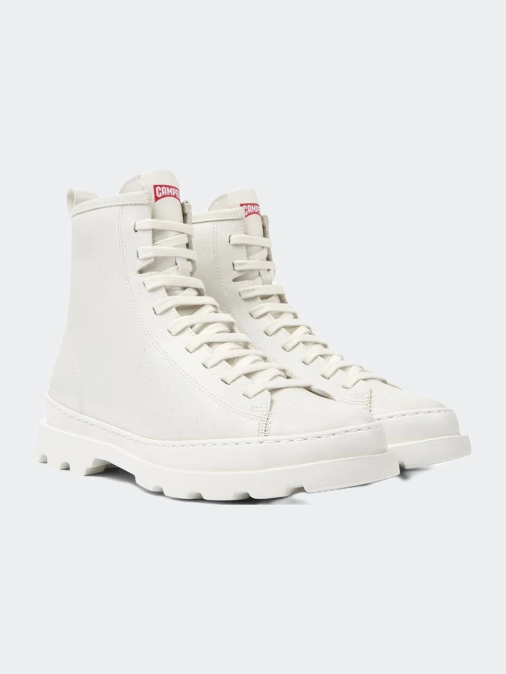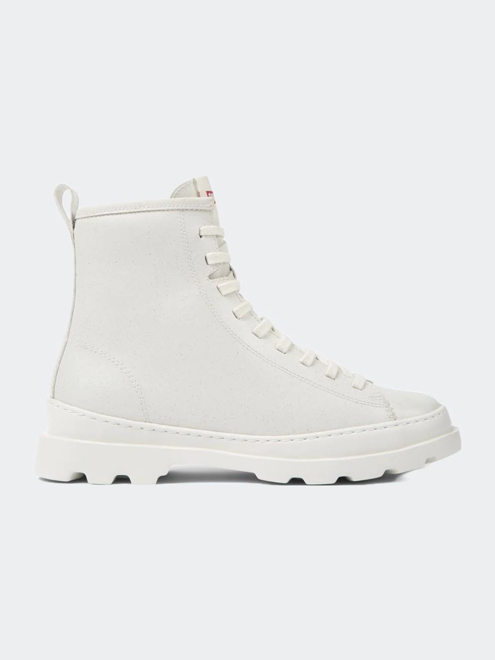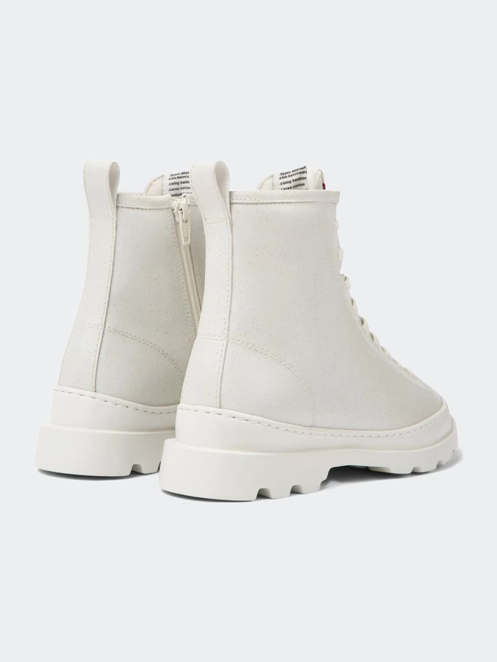 White boot for women. Leather upper with laces and zip. 51% recycled EVA outsole. A Little Better, Never Perfect. The Brutus women’s shoes combine leather uppers with lightweight soles and a cushioned footbed to create a dynamic, urban look.