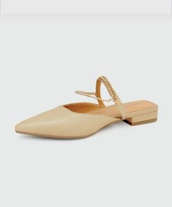 A chain embellished arch strap elevates the undeniably chic on the go flat. Crafted from high quality leather and featuring a classic pointed toe, on the go is an effortless choice to take you through all your daily duties and well into your after dark adventures.