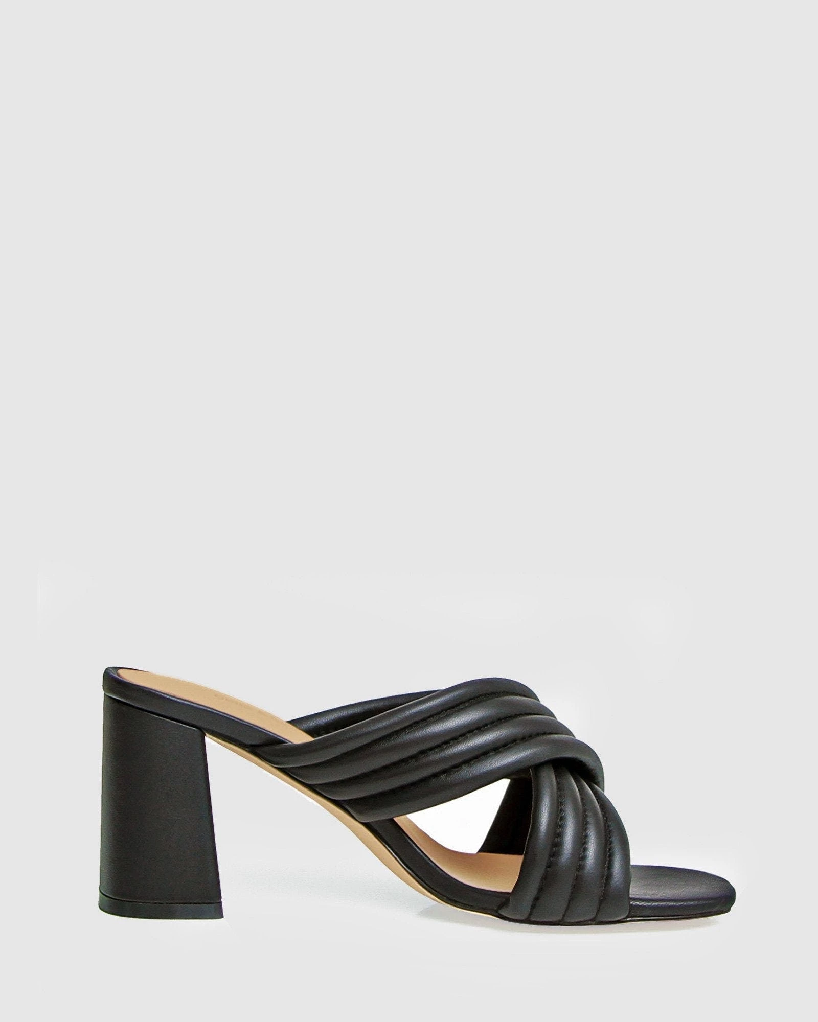 The When In Rome Quilted Mules by Belle and Bloom feature statement-making quilted straps for a unique take on the classic mules. This brunch-to-bar style is crafted in genuine leather complete with a padded sole and chunky block heel for all day comfort.