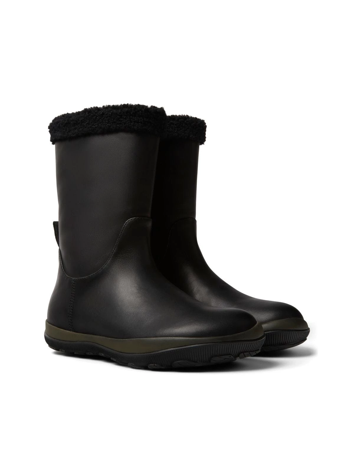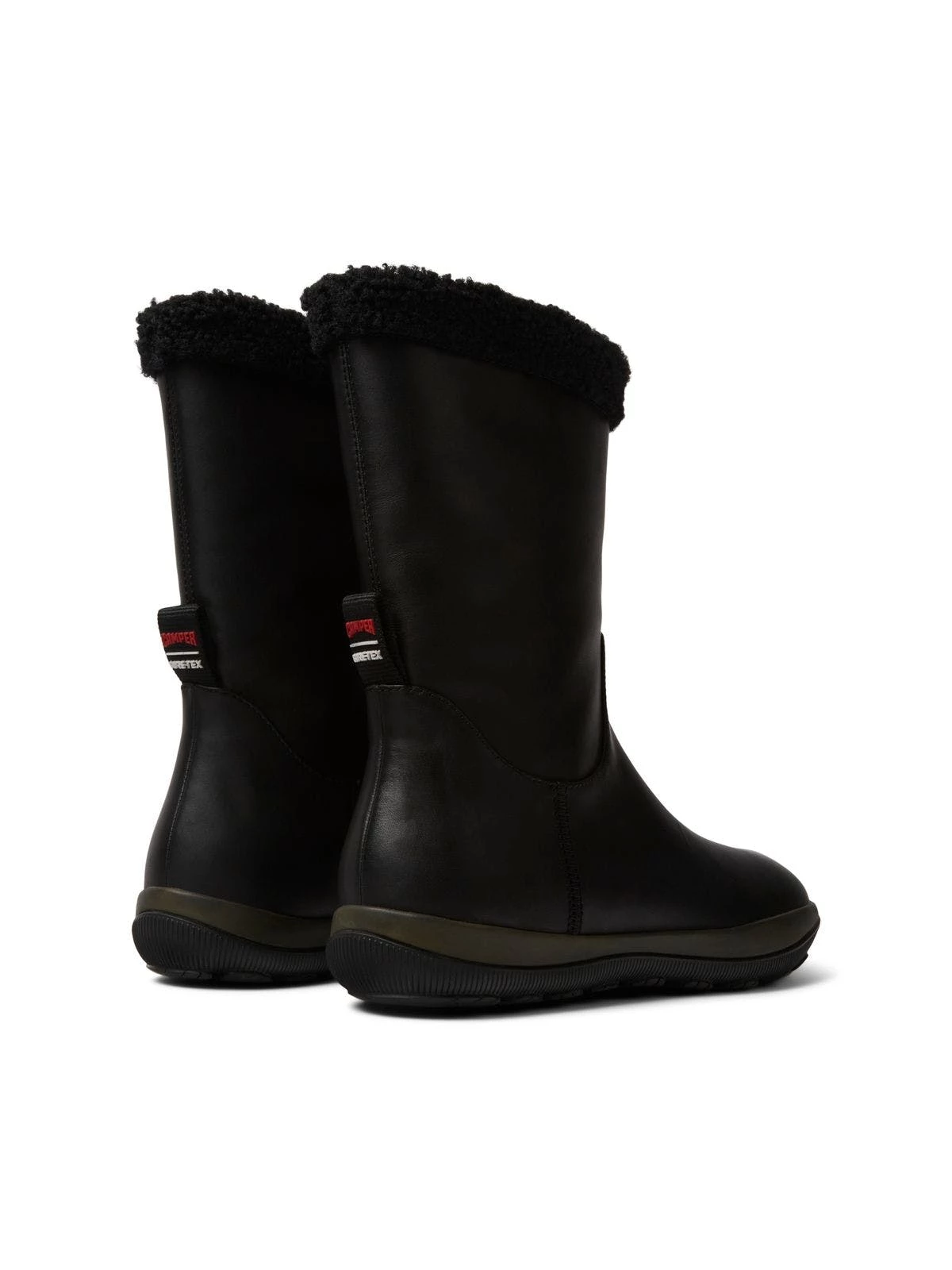 Black leather women’s boots with GORE-TEX technology, recycled PET faux fur, OrthoLite® Recycled™ footbeds, EVA midsoles, and Michelin rubber outsoles (27% natural).A winter version of our iconic Peu, Peu Pista is an all-weather style with winterproof features.