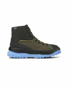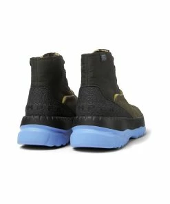Gray and green recycled textile and nubuck women’s ankle boots with PU and rubber outsoles. Teix is this iconic hiking-inspired line originally launched in 1997. Boasting extreme volume, this unisex line offers a contemporary look, winter protection approach, and extra comfort.