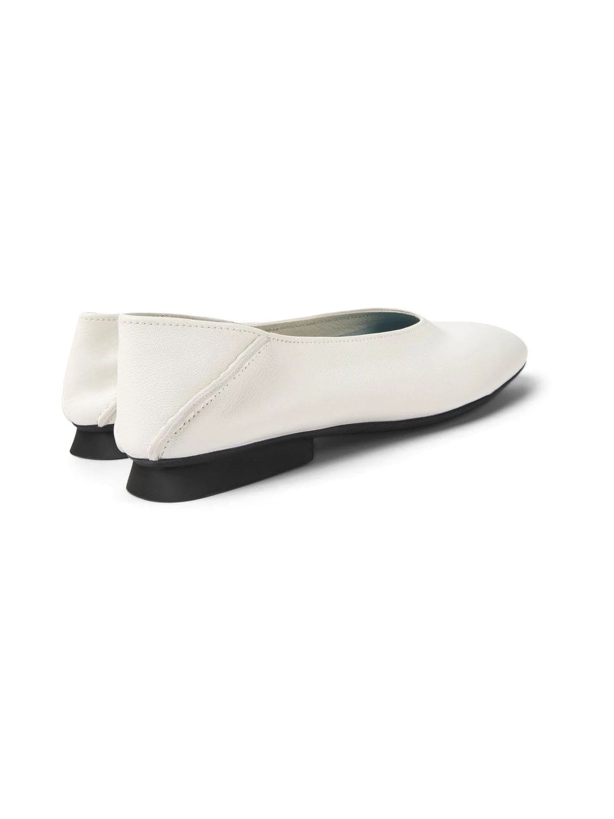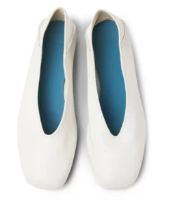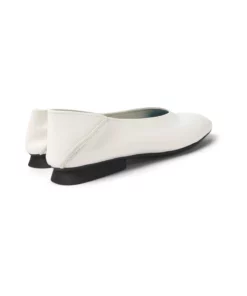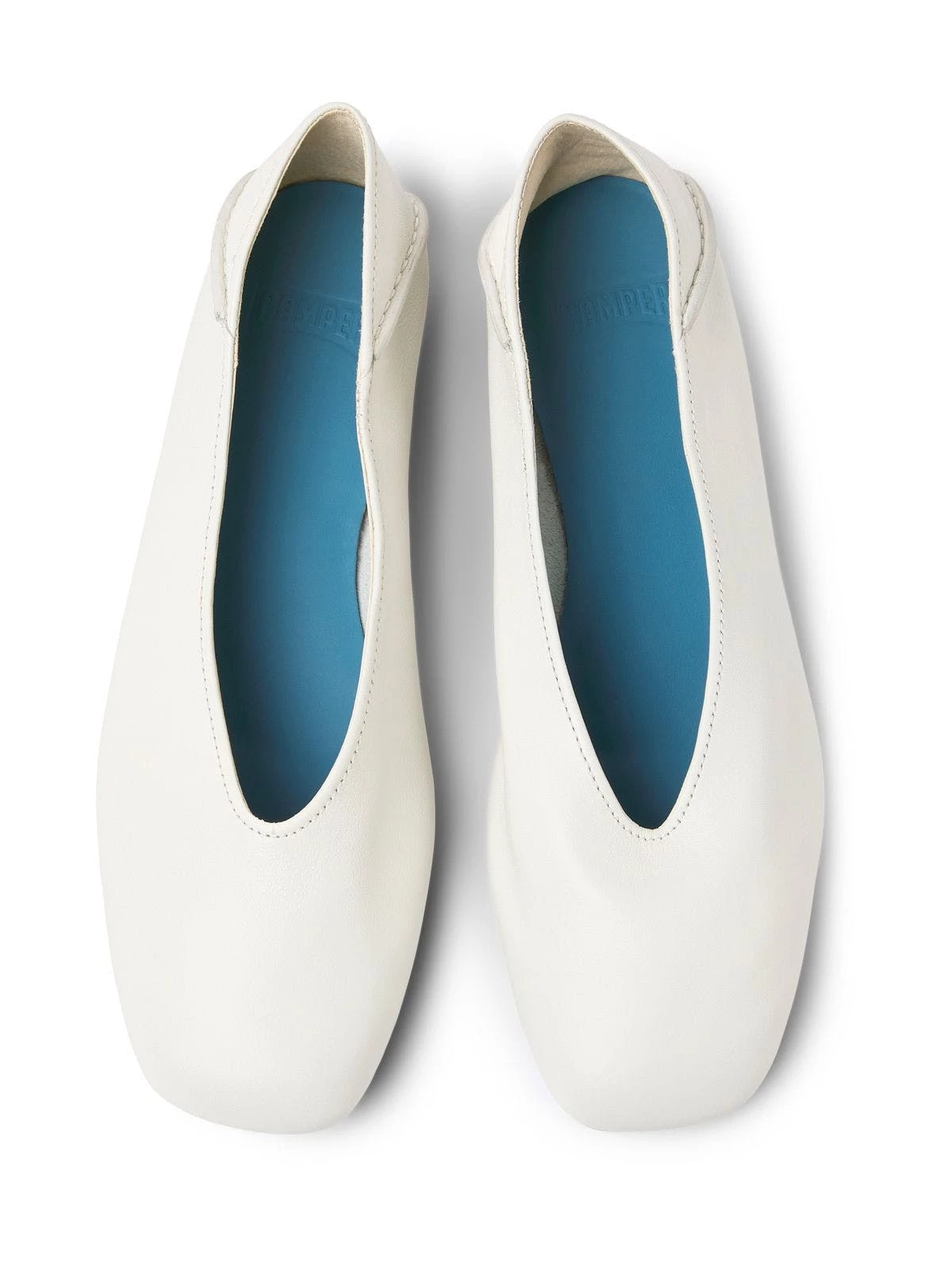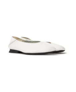 White leather women’s ballerina flats with OrthoLite® Recycled™ non-removable footbeds and TPU outsoles (20% recycled). This feminine Casi Myra line boasts a timeless design with a slightly squared shape.