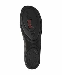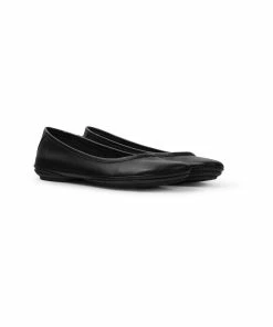 Black women’s moccasin. Full-grain leather and removable Ethyl Vinyl Acetate insole. Right women’s ballerinas combine the flexibility of slippers with the durable protection of rubber soles for city streets.