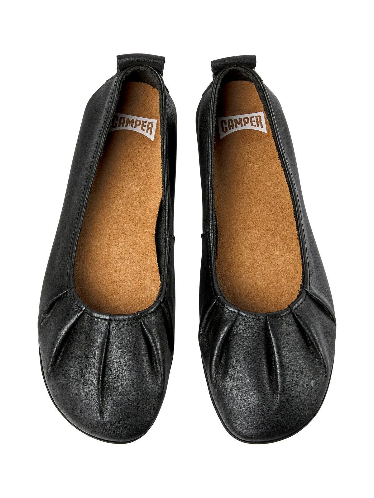 Black leather women’s ballerinas with removable EVA footbeds and rubber outsoles (20% recycled).First launched in 2005, their right combines the flexibility of ballerina slippers with the durable protection of street-ready rubber soles.