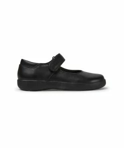 Black leather mary jane flats for kids with Hook & Loop closing system, OrthoLite® footbed and 100% rubber outsoles. Spiral Comet offers classic style for any little girl. Easy to put on and take off is timeless design reimagined for the comfort of smaller feet.