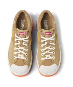 Beige and white recycled textile and nubuck women’s shoes with PU and rubber outsoles. Teix is iconic hiking-inspired line originally launched in 1997. boasting extreme volume, this unisex line offers a contemporary look, winter protection approach, and extra comfort.