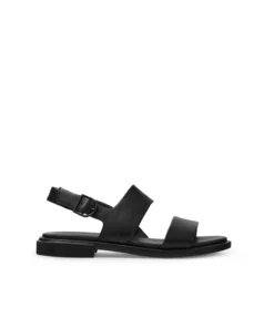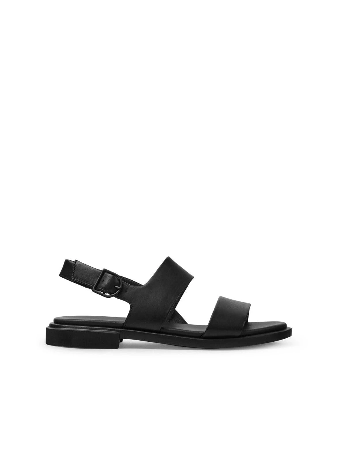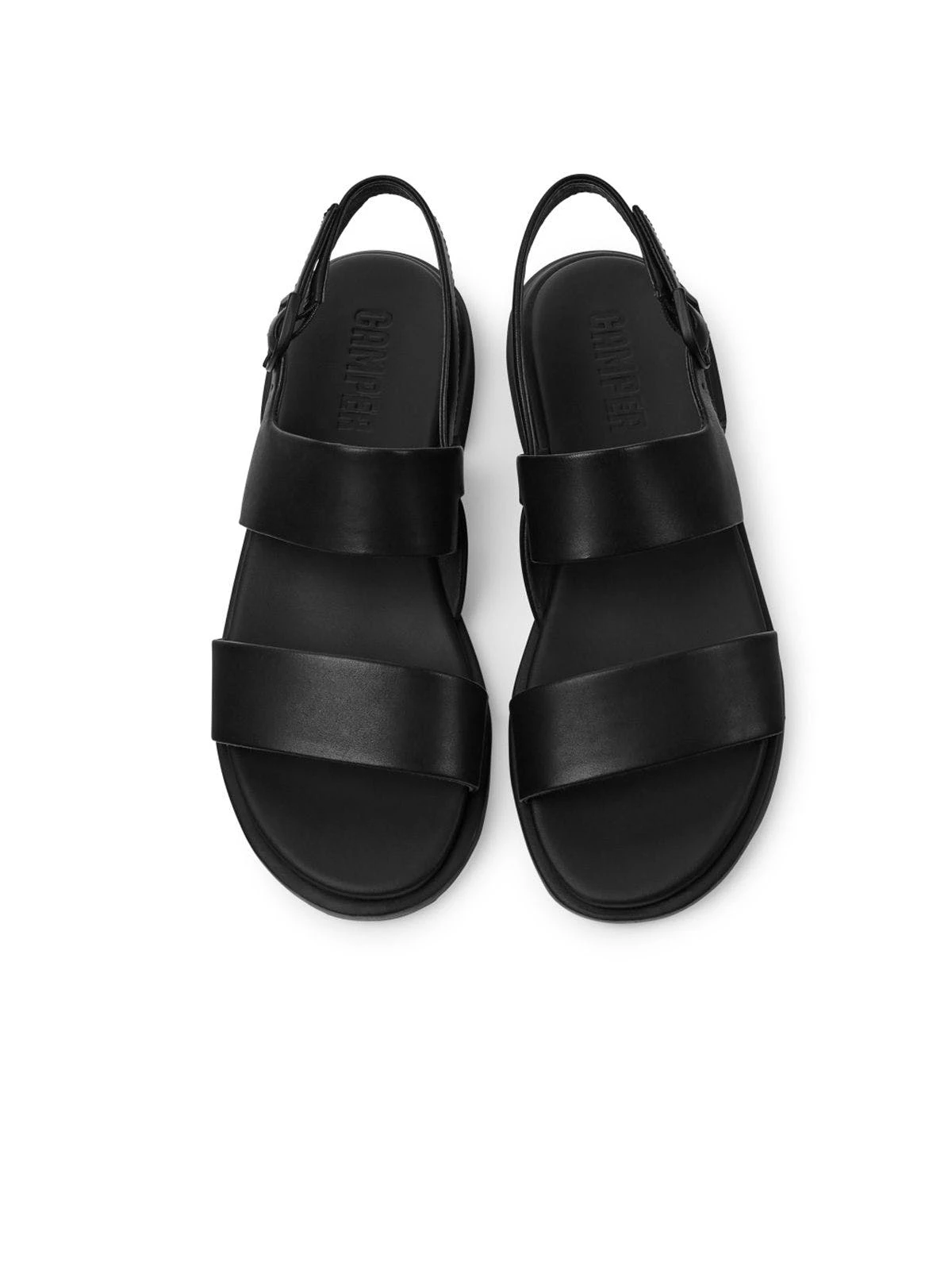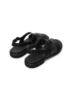 Black leather women’s sandals with 100% EVA outsoles. Eda sandal features an anatomical shape, lightweight sole, and rounded heel for a relaxed-yet-refined summer look.
