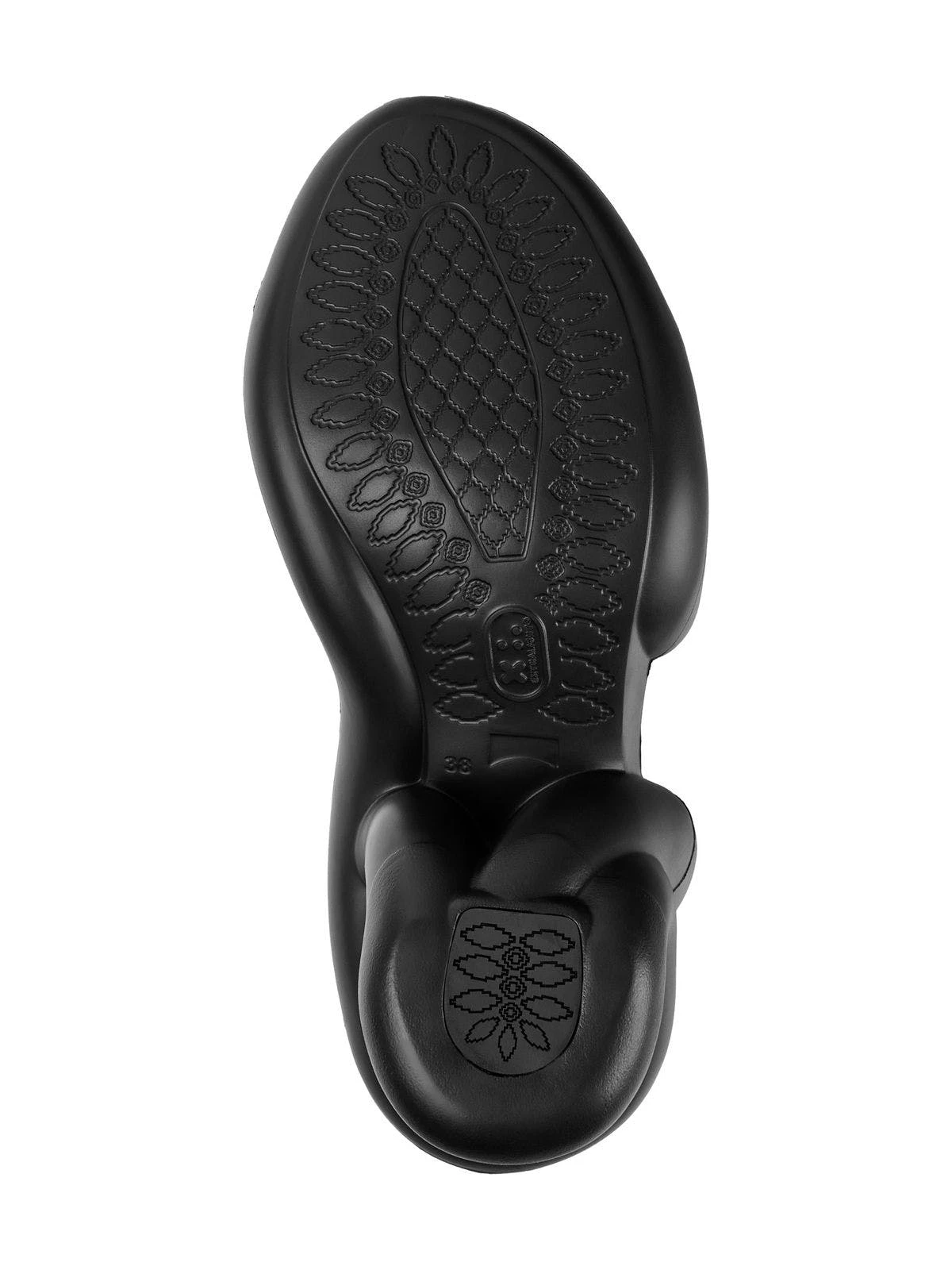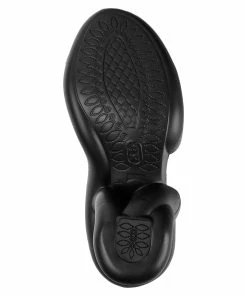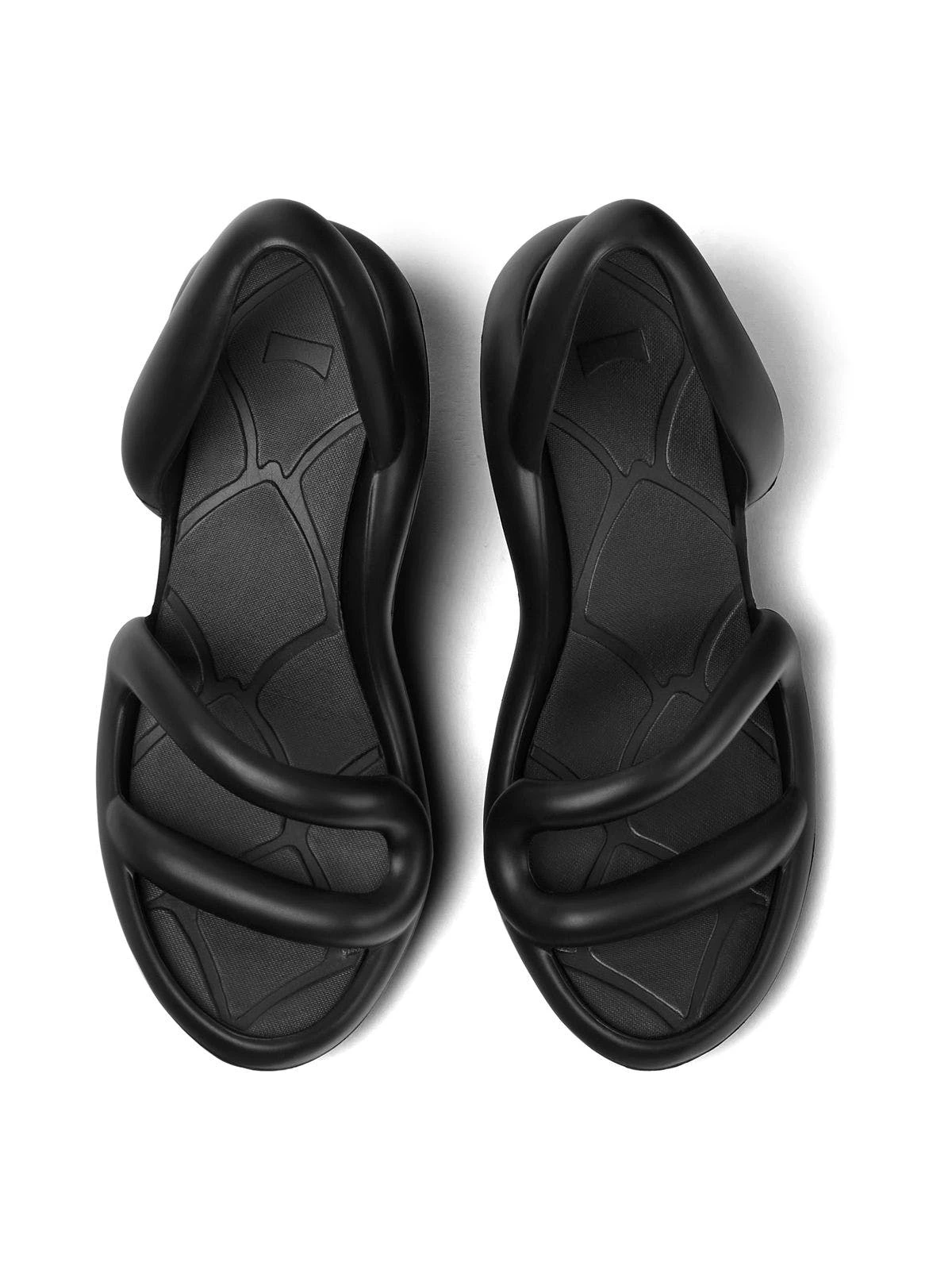 Black unisex sandals with XL Extralight® Organix™ outsoles (30% bio-based sugarcane). Inspired by the curves of a snake, Kobarah was designed to wrap around the foot. Made with fully recyclable materials, its rounded shape and wide heel offer a unique heeled sandal with a casual-yet-contemporary aesthetic.