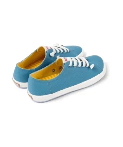 Blue textile women’s sneakers with OrthoLite® Recycled™ removable footbeds and rubber outsoles. This Peu Rambla features characteristic zig-zag laces and mixed materials for a casual feel with a fun twist.