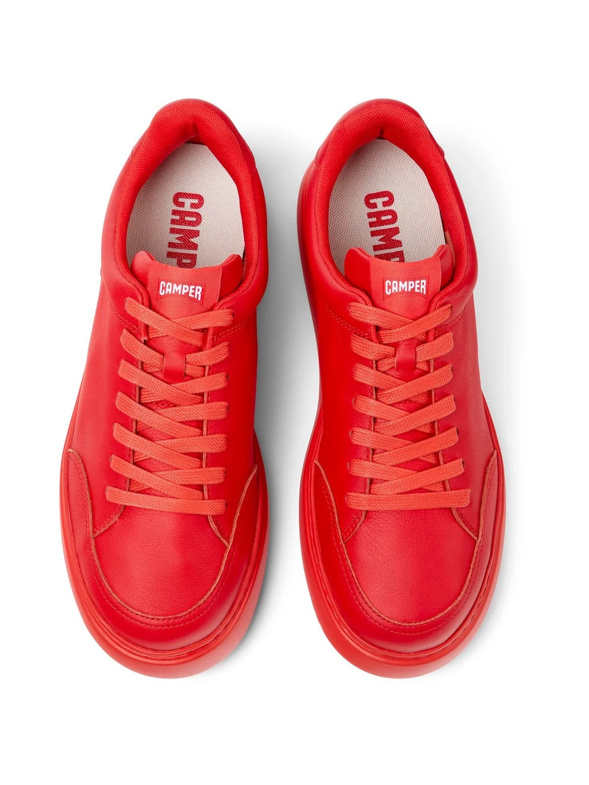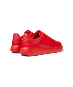 Red leather men’s sneakers with OrthoLite® Recycled™ removable footbeds and XL Extralight® Organix™ 3.0 outsoles (30% bio-circular compounds). Runner K21 is the latest addition to the Runner family with a retro-inspired approach and a craft touch featuring a new increased volume.
