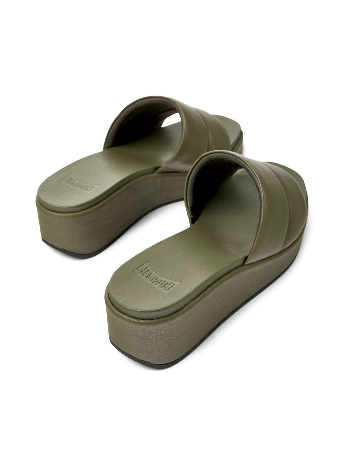 This Misia women’s flatform sandals are cushioned platforms that offer a stable height and a sophisticated silhouette wrapped in soft and elegant monochrome leather.