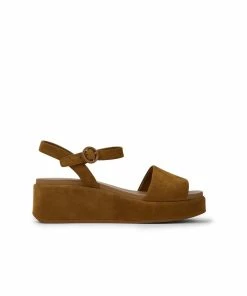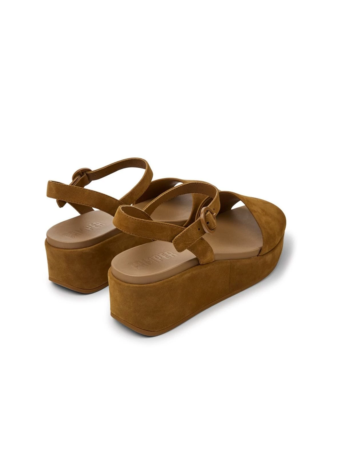 Brown nubuck women’s sandals with Polyurethane outsoles. The Misia Women’s Flatform Sandals are cushioned platforms that offer a stable height and a sophisticated silhouette wrapped in soft and elegant monochrome leather.