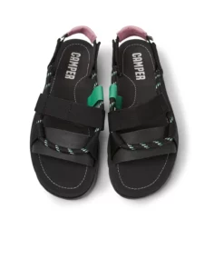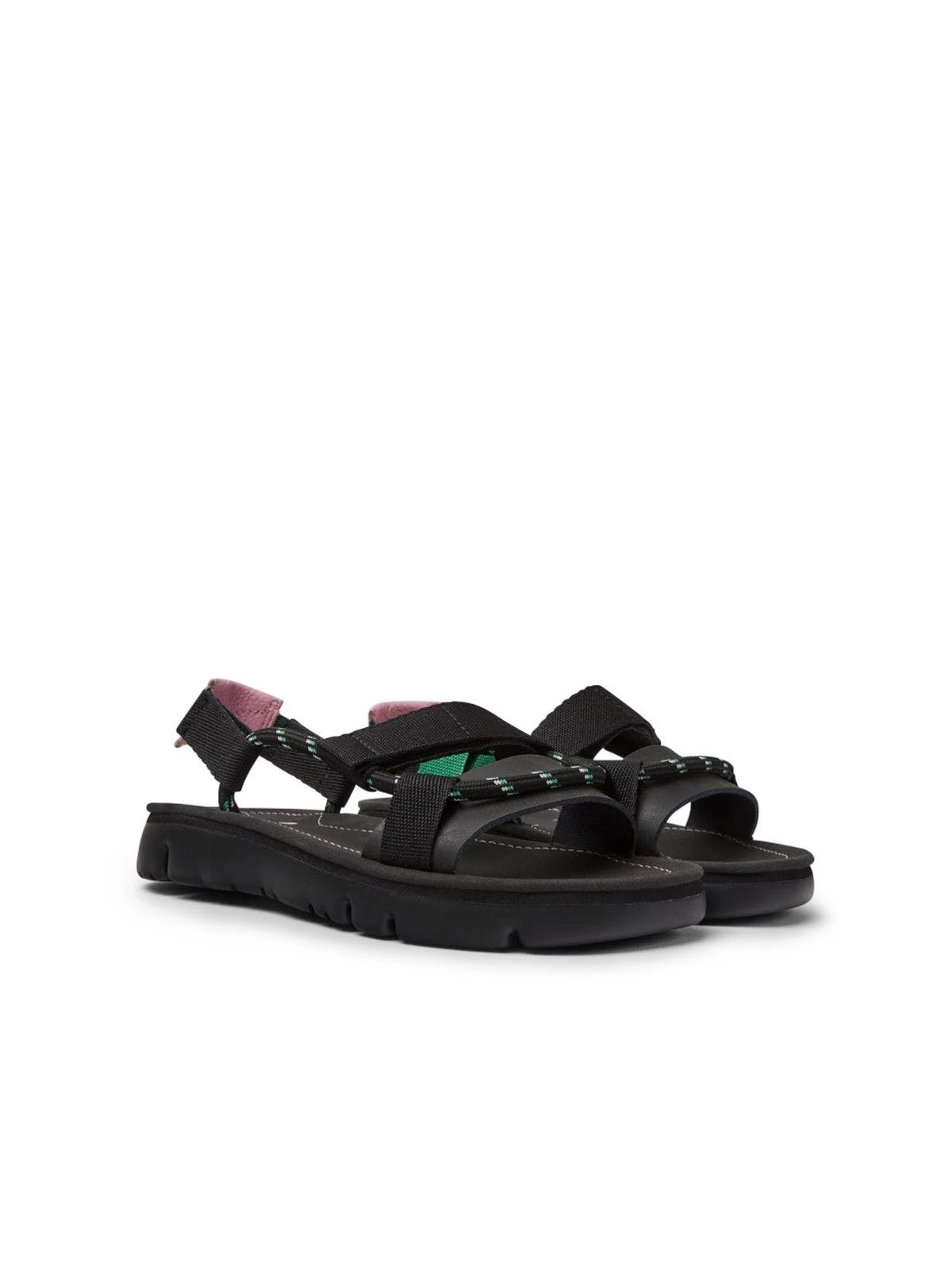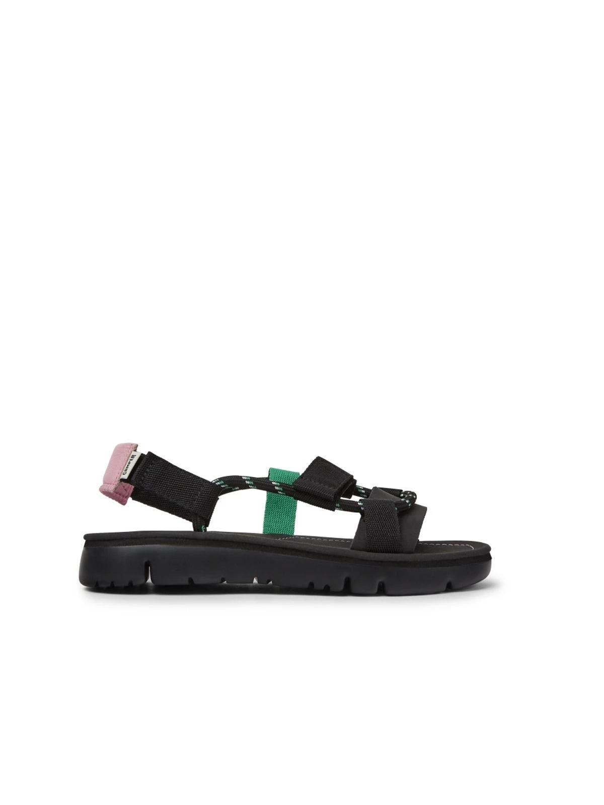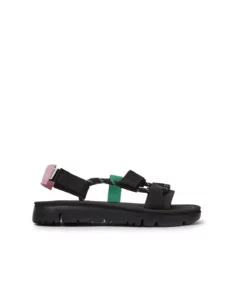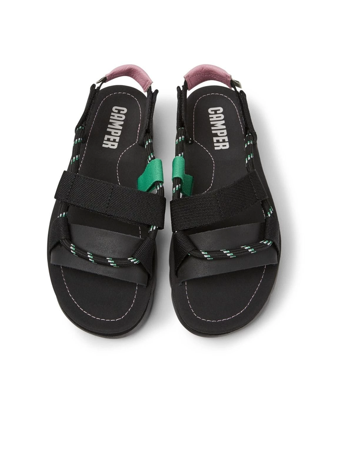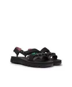 Black, pink, and green leather and recycled PET webbing women’s sandals with XL EXTRALIGHT® Organix™ outsoles (30% bio-based sugarcane). Spanish for “caterpillar”, the Oruga men’s sandals offer flexible, lightweight soles and an urban summer look.