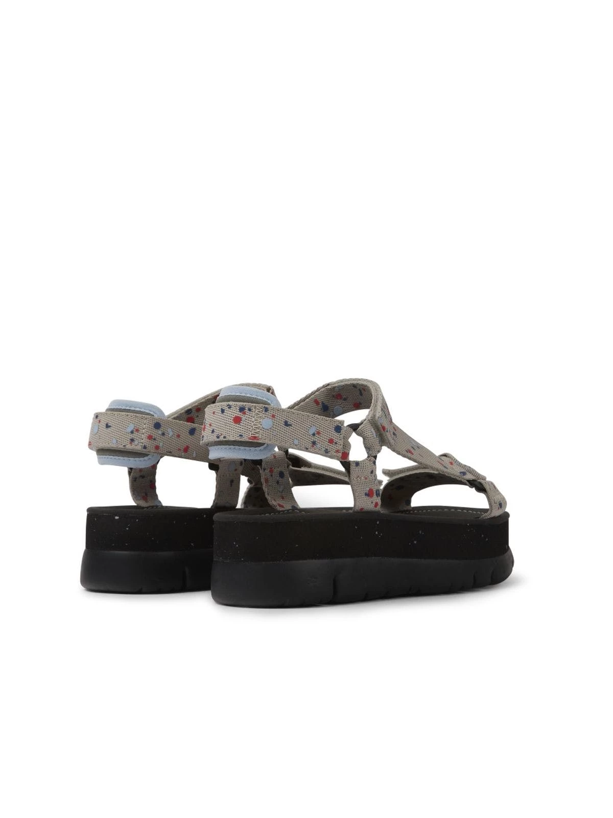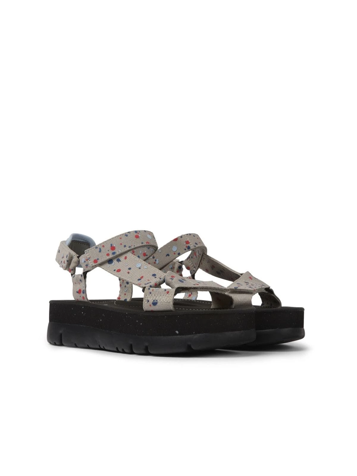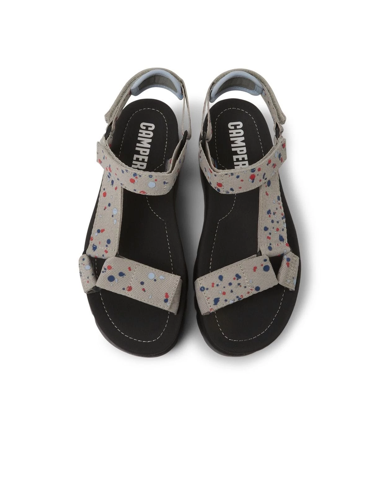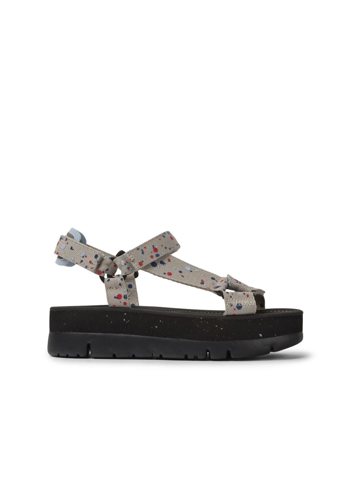 Women’s multicolored sandals in recycled PET webbing for a paint splatter feel. Ethyl Vinyl Acetate midsole with 20% recycled material, XL EXTRALIGHT® outsole with 51% recycled material and velcro for comfort. The Oruga Up sandal is designed for summer and features a thick, distinctive outsole for a higher height and unique look.