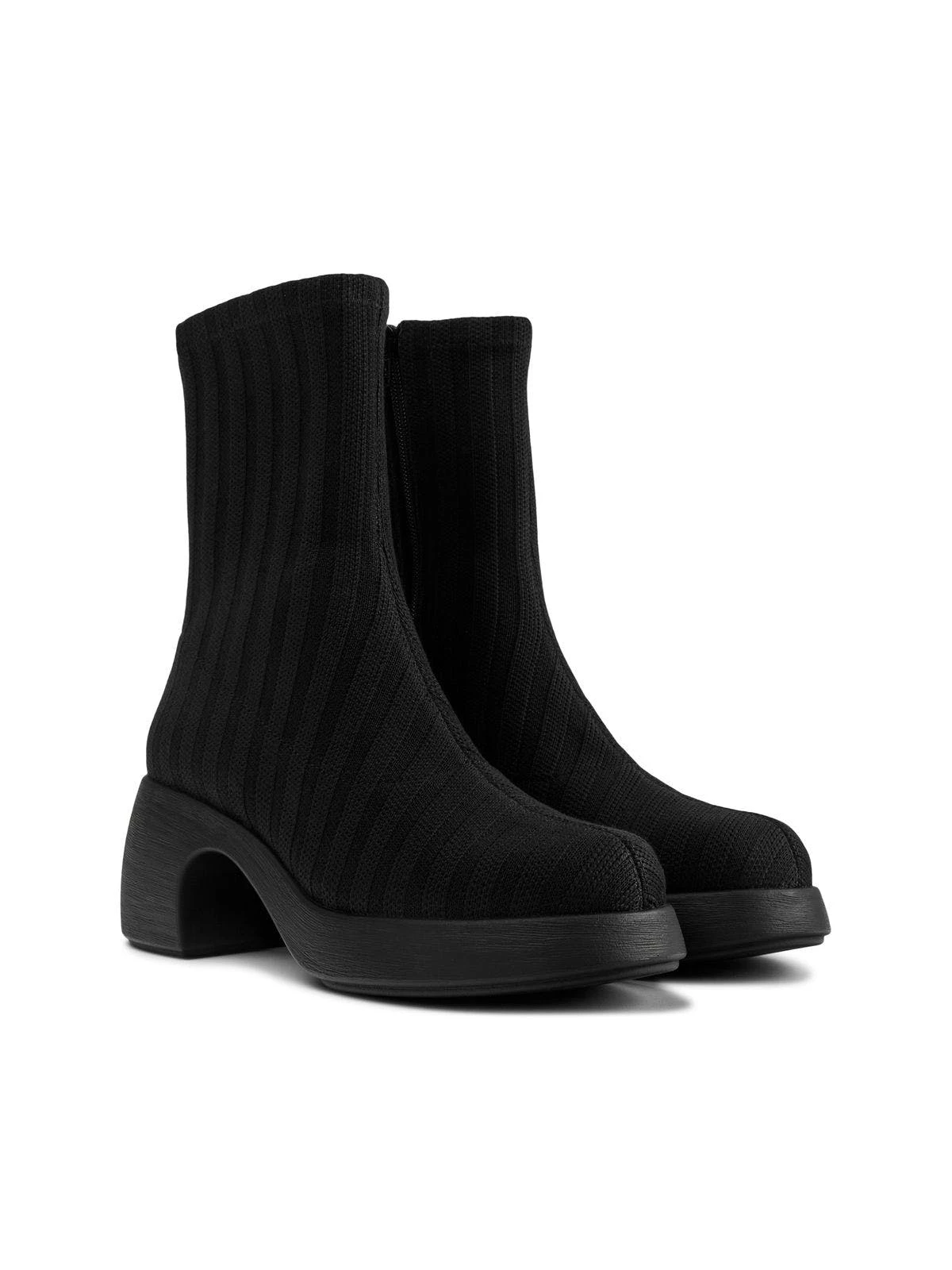 Black women’s boots with TENCEL® lyocell uppers, EVA footbeds, and PU outsoles.Thelma features a refined blend of volume with a curvaceous heel.