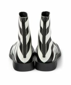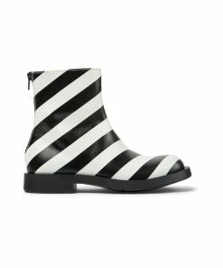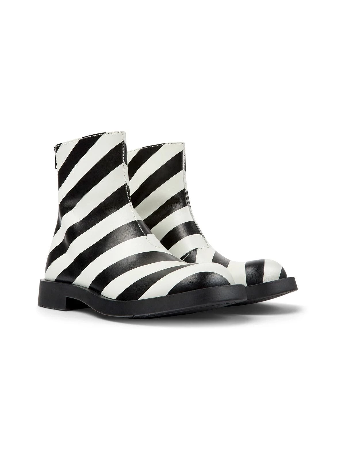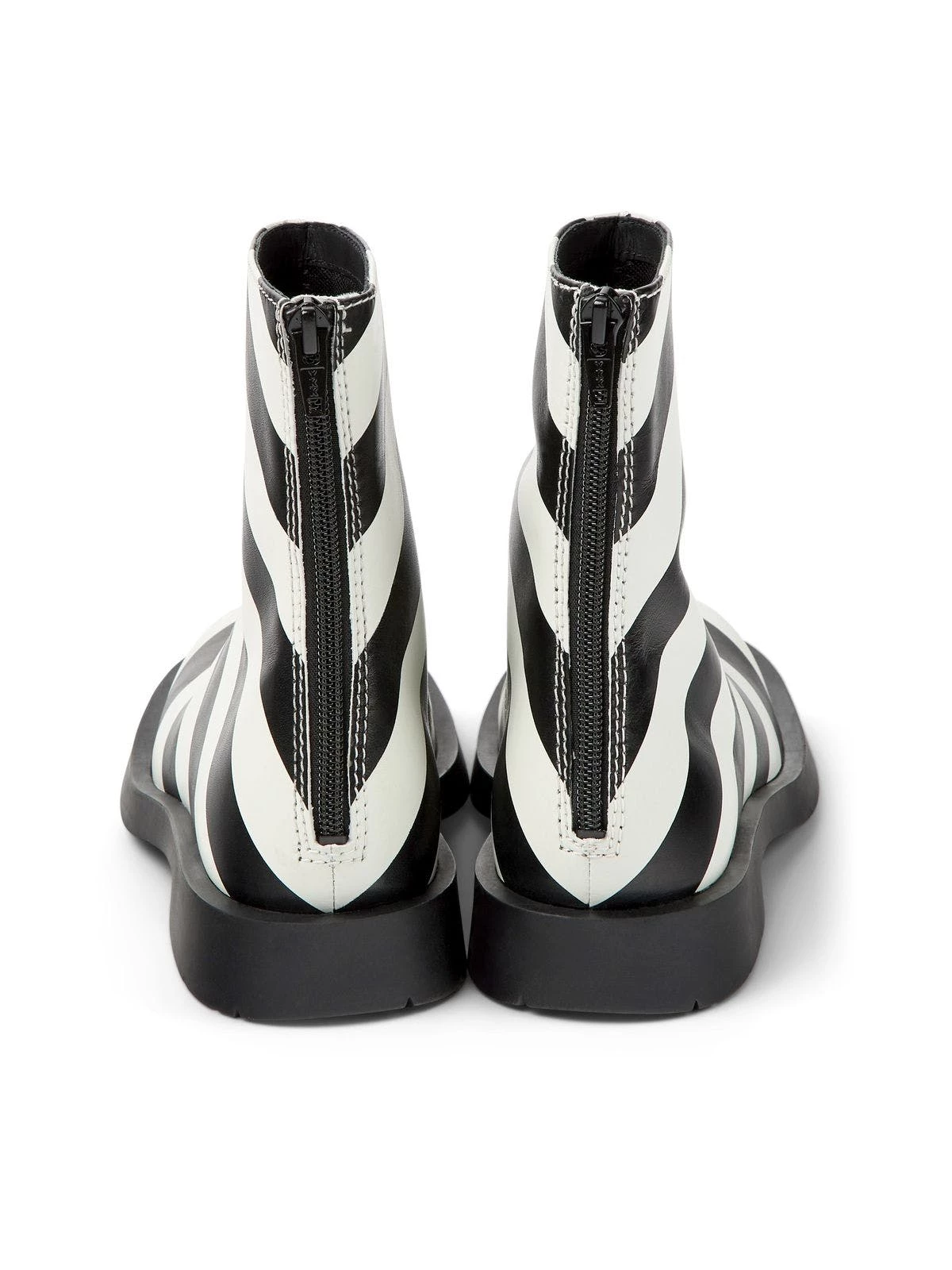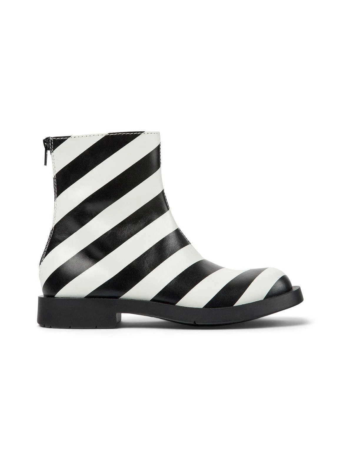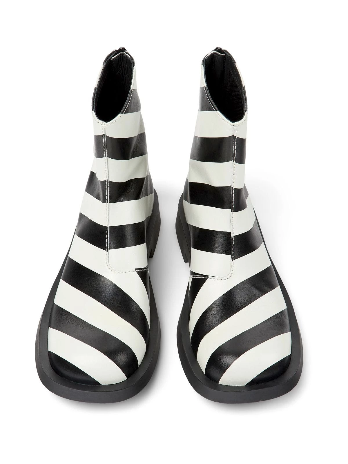 Multicolored striped leather women’s ankle boots with OrthoLite® Recycled™ footbeds and rubber outsoles.