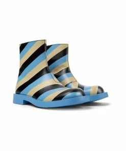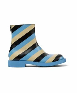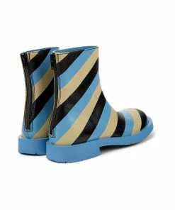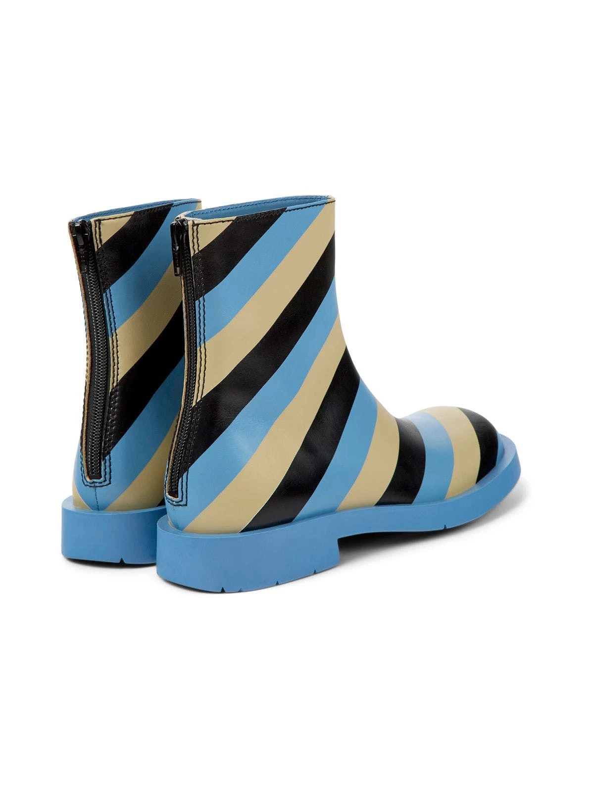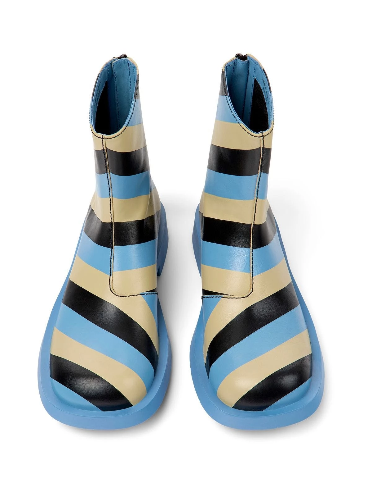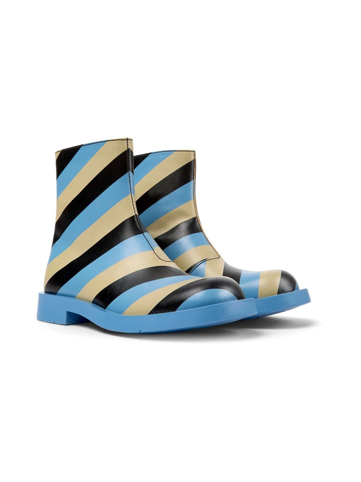 Multicolored striped leather women’s ankle boots with OrthoLite® Recycled™ footbeds and rubber outsoles.