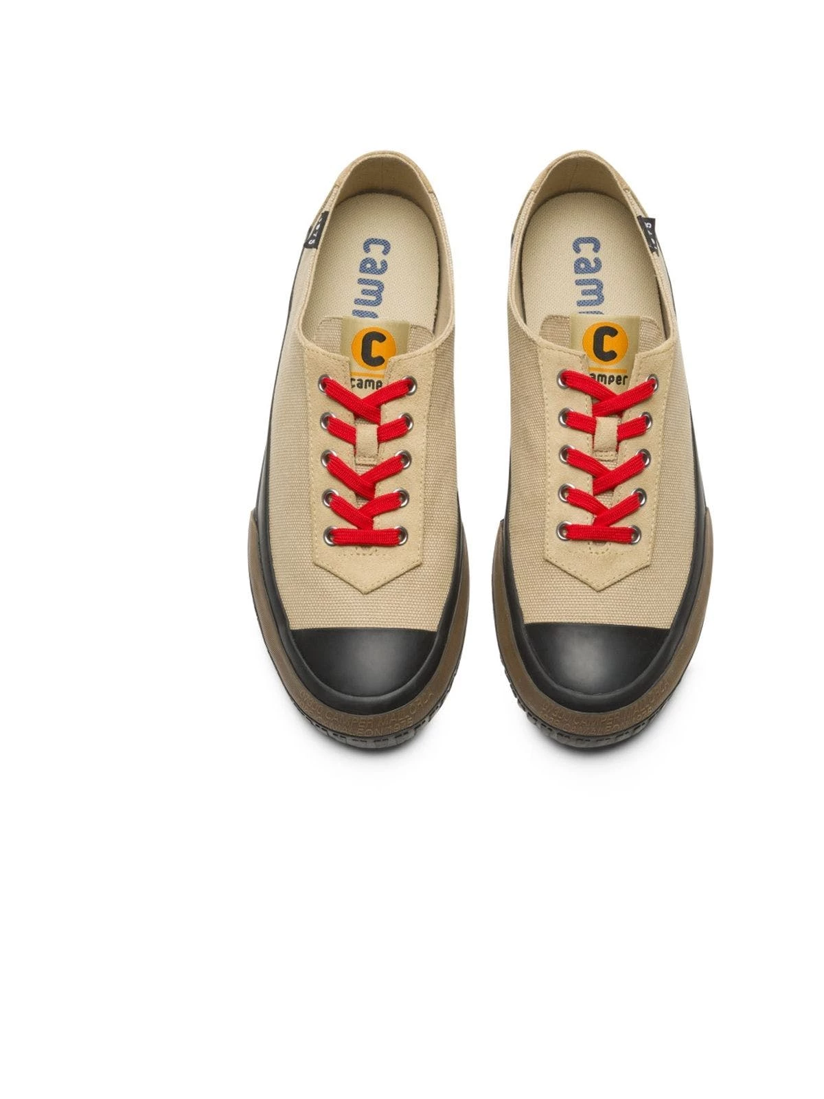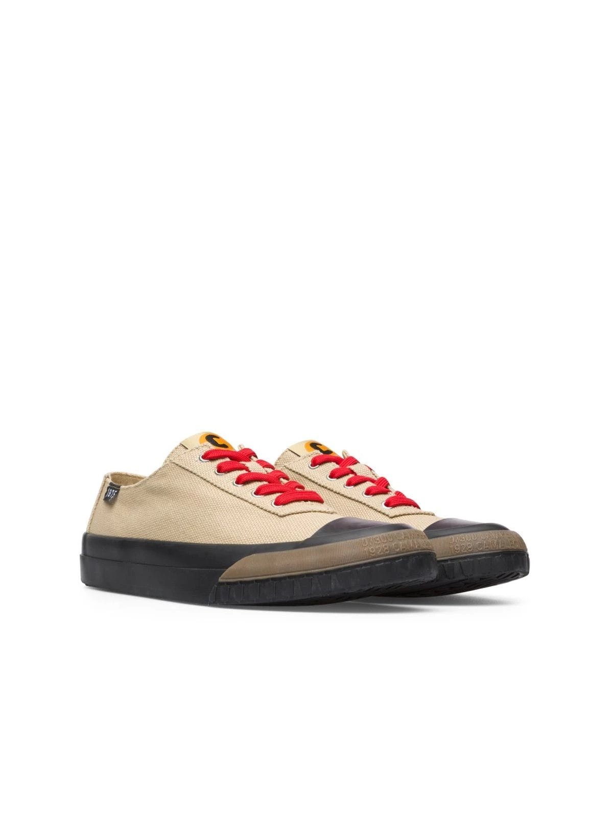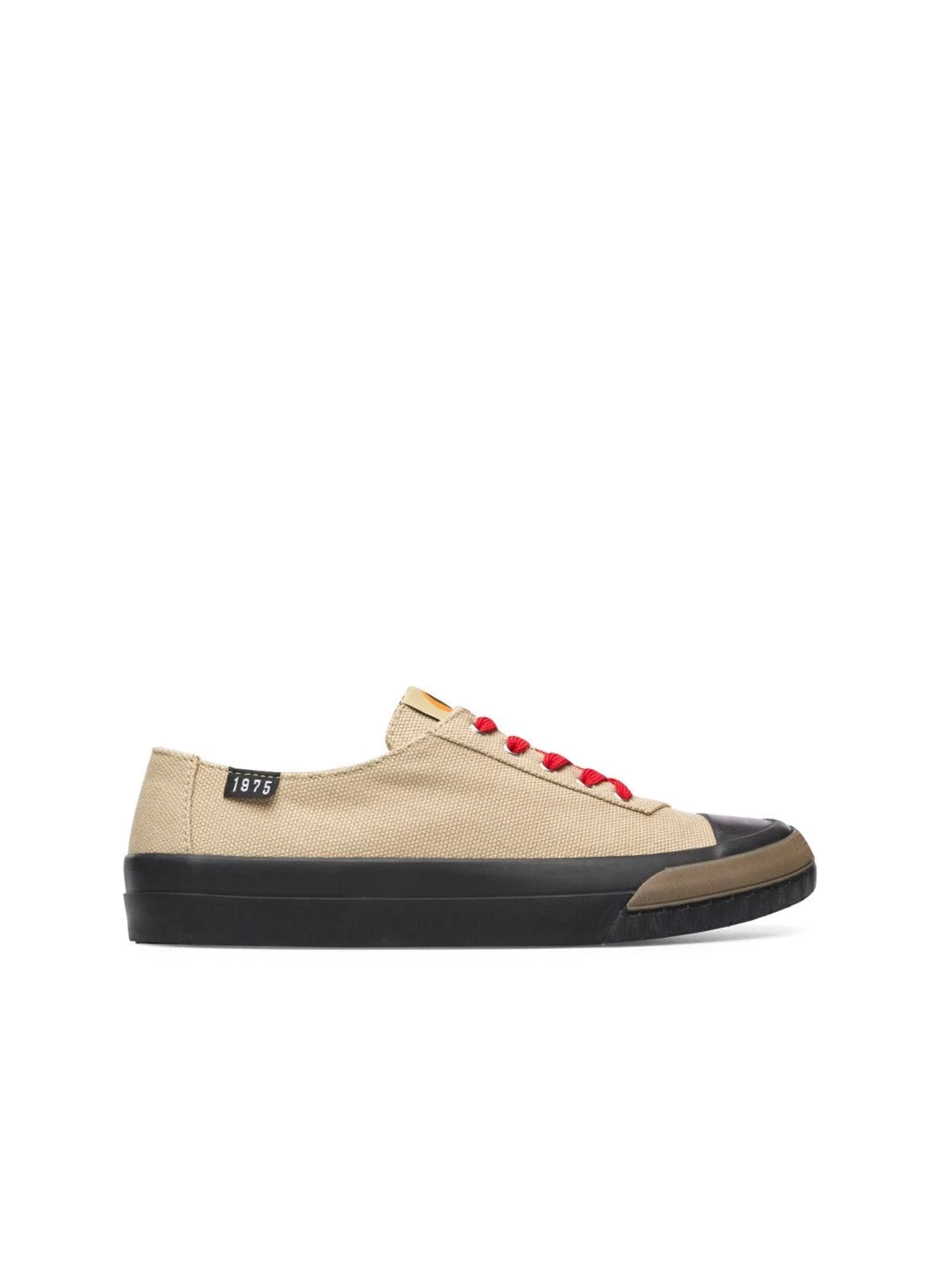 Camaleón 1975, the line inspired by the first Camper shoe, is today a symbol of Mallorca and the Mediterranean. This casual footwear icon reinvents itself without losing an iota of its natural simple sustainable essence. Inspired by the footwear people wore in the countryside more than a century ago. Its cotton is natural and its sole is made of recycled rubber.