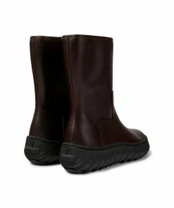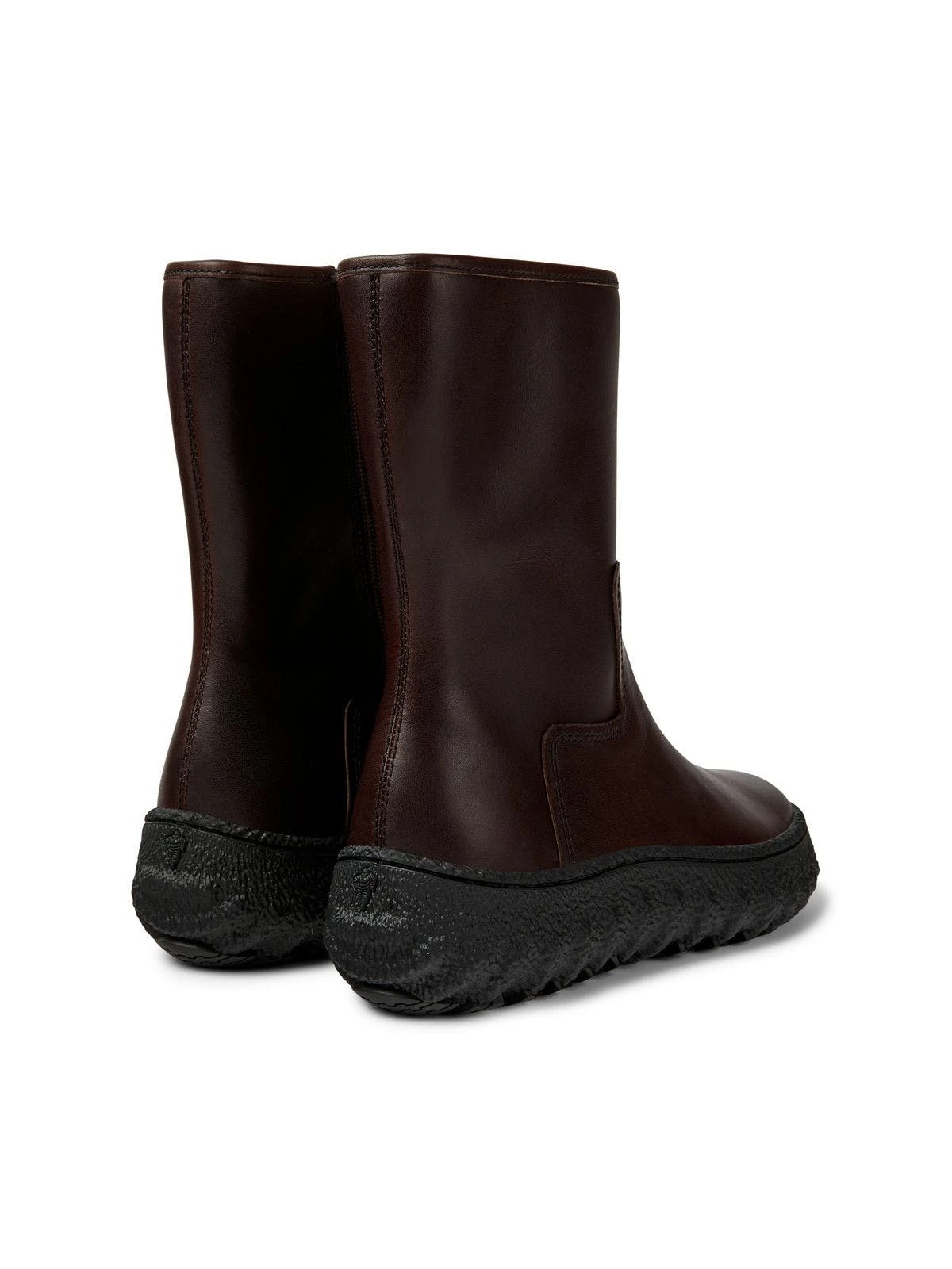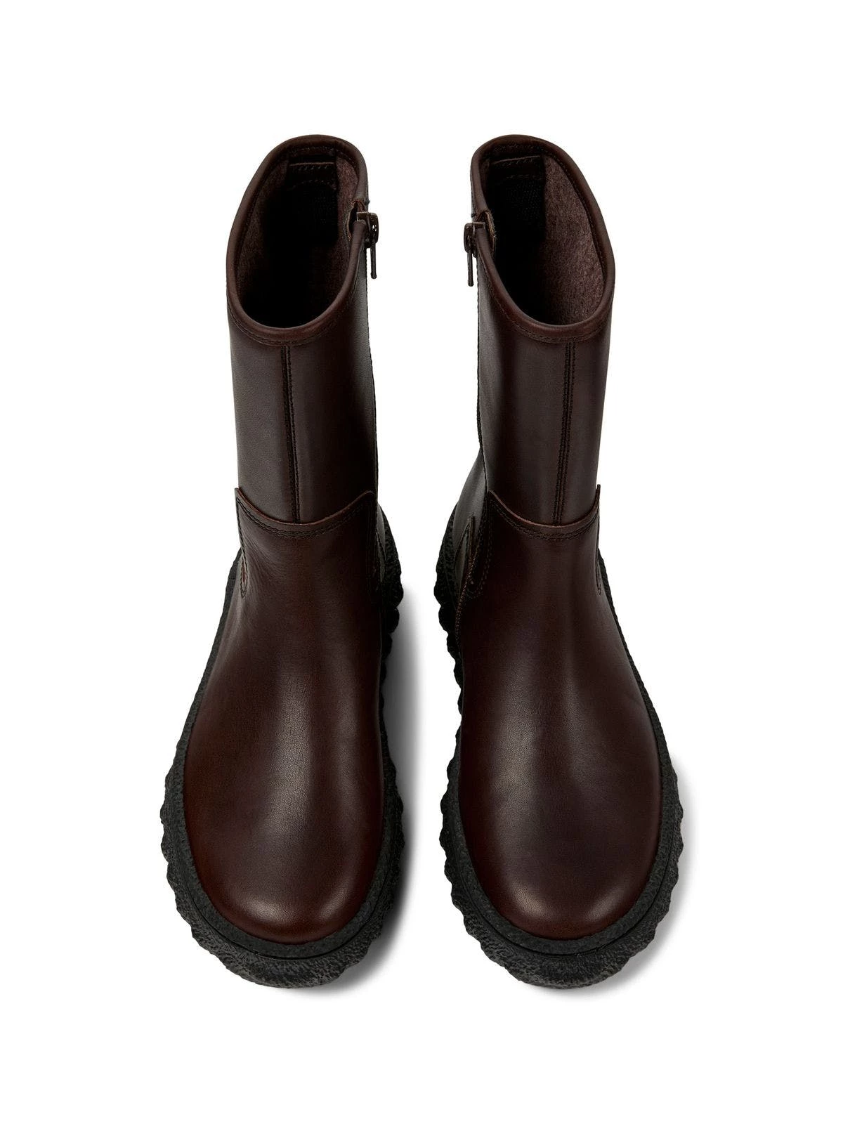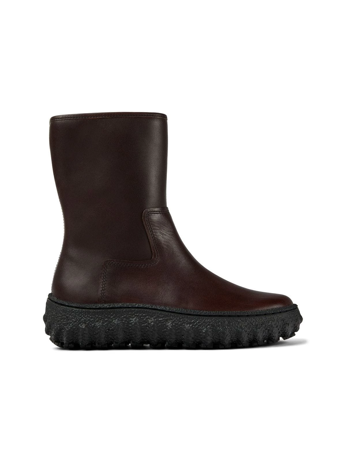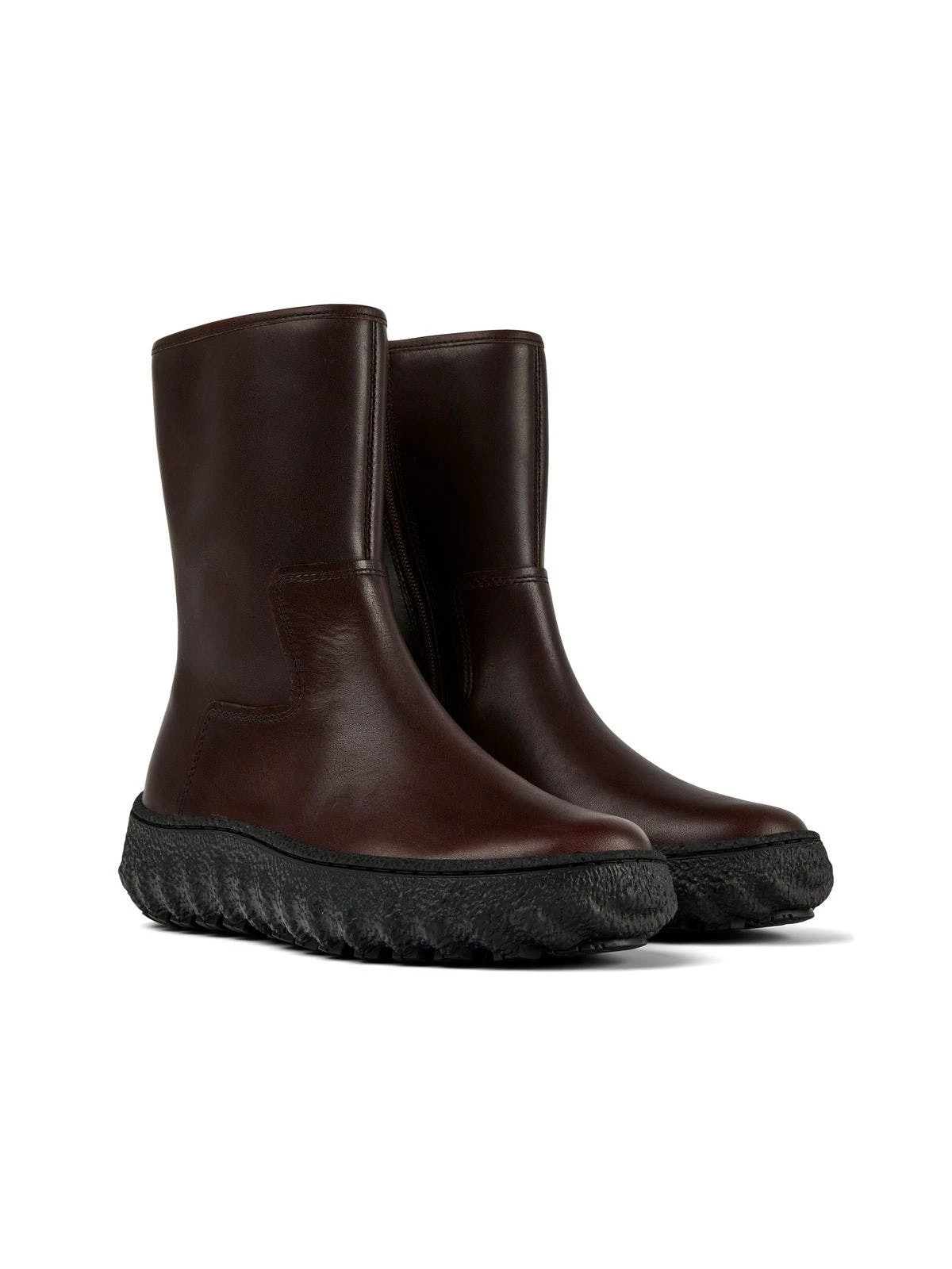 Dark brown leather women’s boots with OrthoLite® Recycled™ footbeds and Michelin rubber outsoles (27% natural).Ground reimagines urban street style by adding a contemporary twist on the industrial Camper aesthetic.