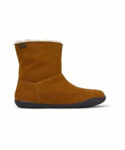 Brown nubuck women’s ankle boots with 20% recycled TPU outsoles.A Camper Icon that evolves with every season. Peu is functional simplicity inspired by walking barefoot. It is 360-degree stitched and built with a strobel construction technique, guaranteeing unmatched flex and durability under any conditions.