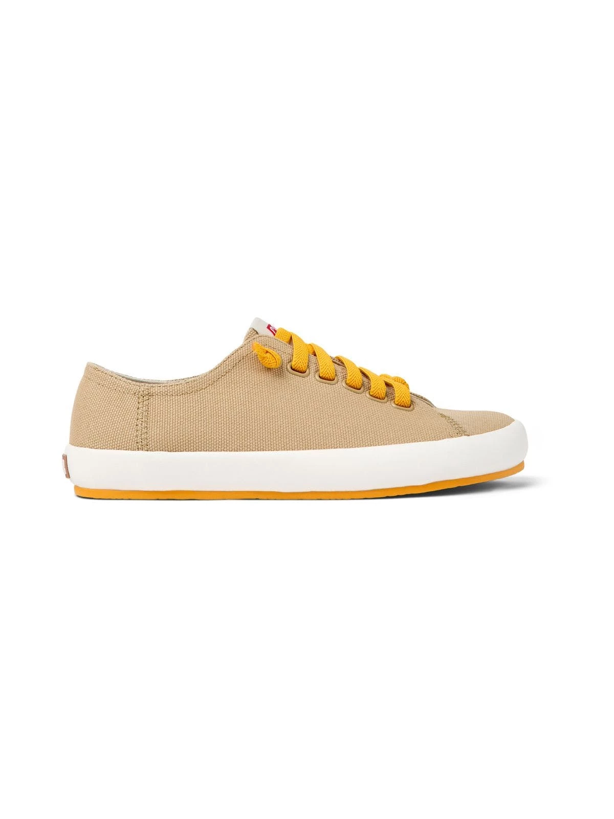 These women’s medium beige sneakers are the perfect canvas-style shoes. Highly breathable thanks to their knitted yarn uppers and liningless interiors, their removable anatomic insoles keep your feet dry and well-cushioned. Put together with a strobel construction technique for extra flexibility, they provide enhanced protection and grip thanks to rubberised outsoles and a vulcanised rubber foxing tape.
