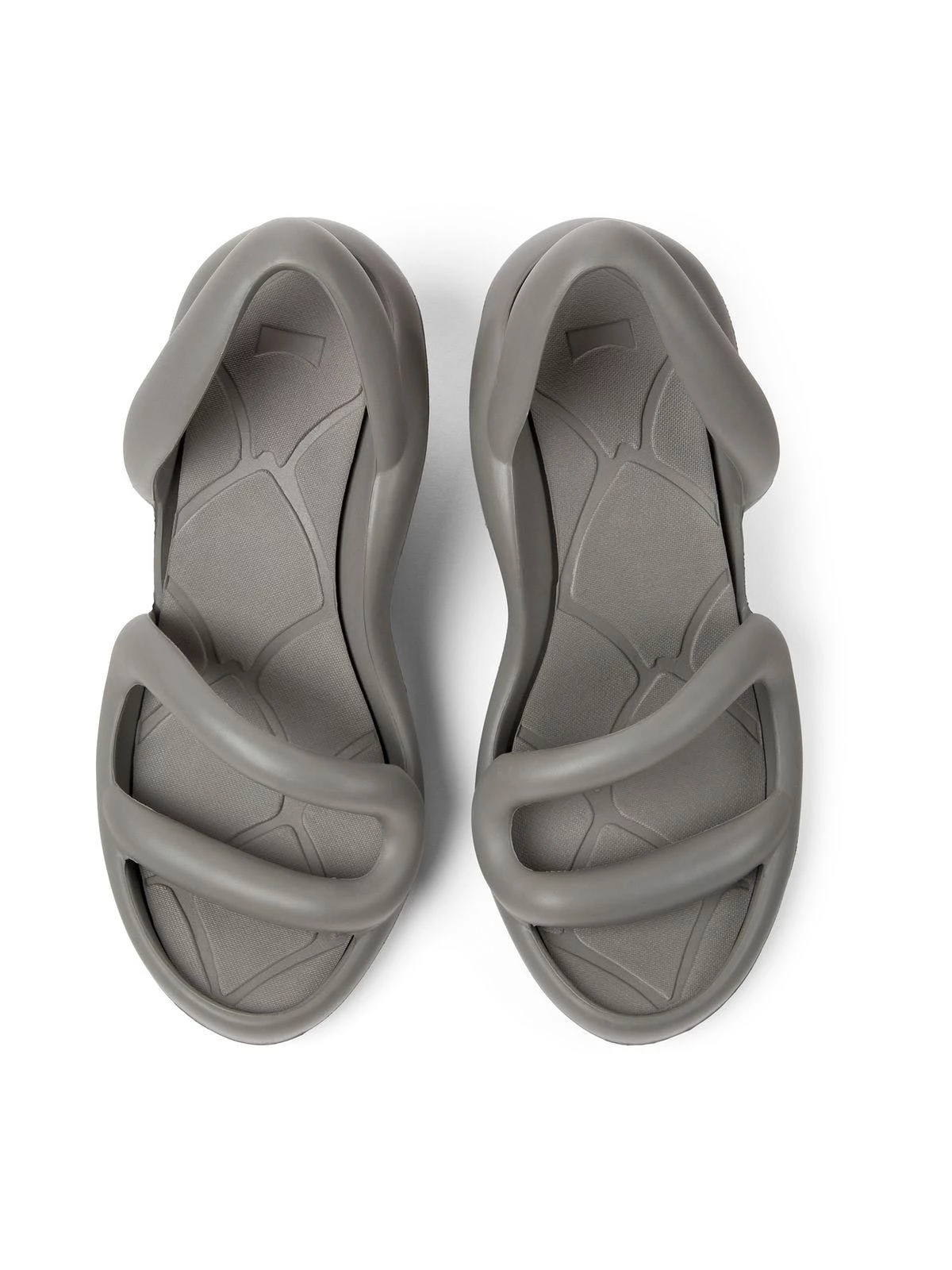 Grey unisex sandals with XL EXTRALIGHT® Organix™ outsoles (30% bio-based sugarcane).Inspired by the curves of a snake, Kobarah was designed to wrap around the foot. Made with fully recyclable materials, its rounded shape and wide heel offer a unique heeled sandal with a casual-yet-contemporary aesthetic