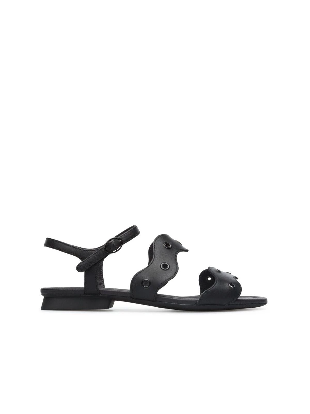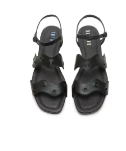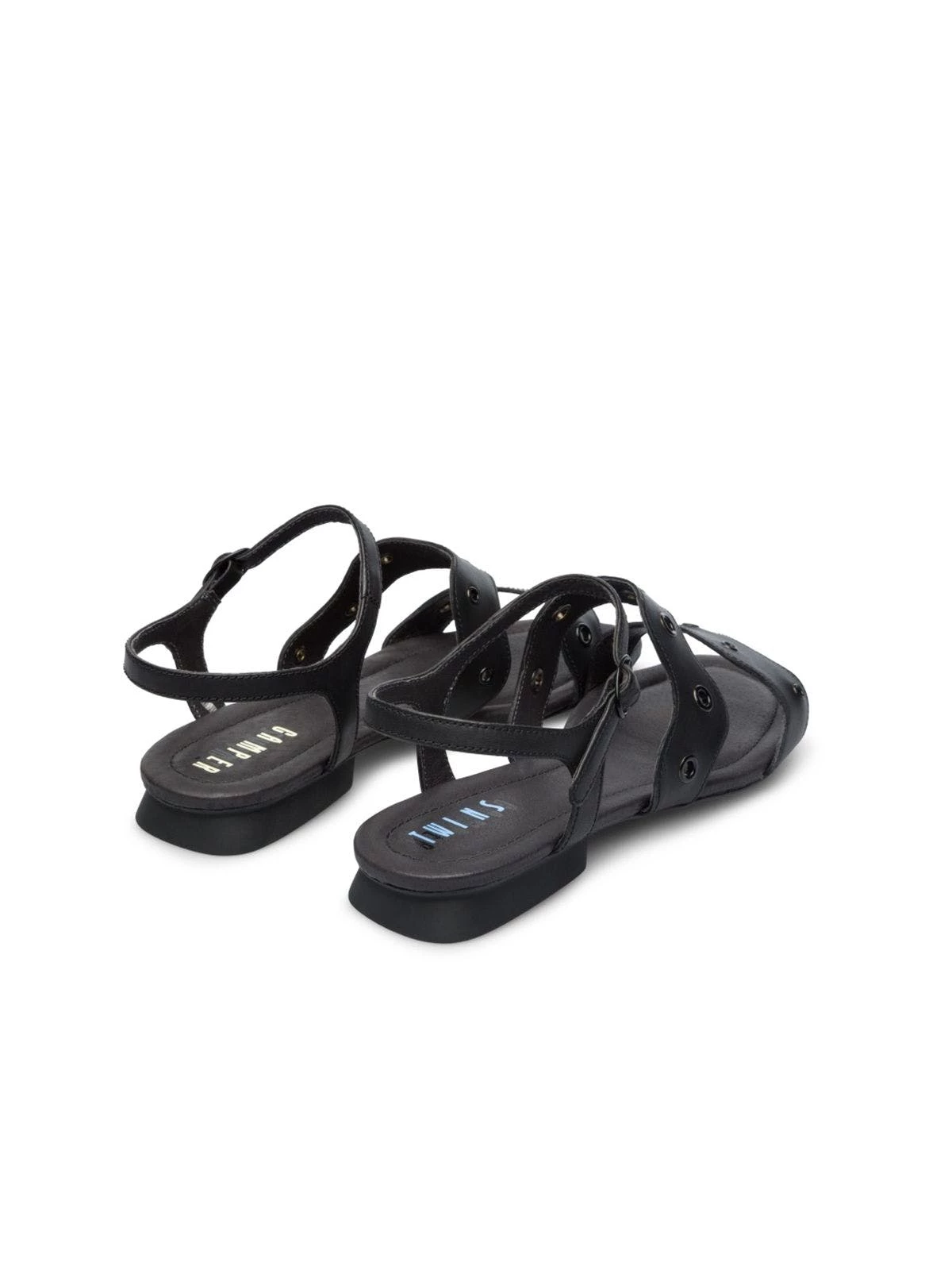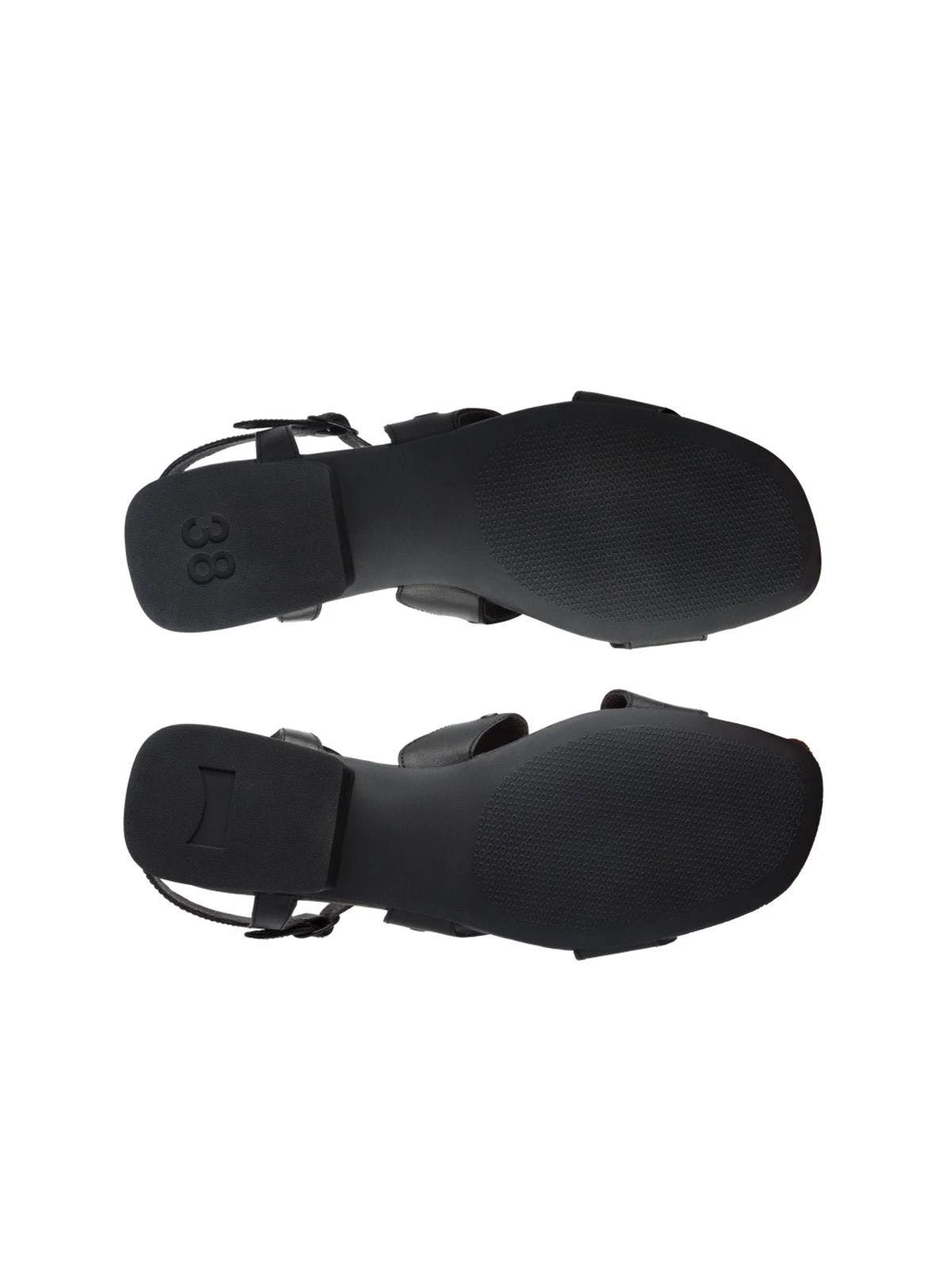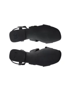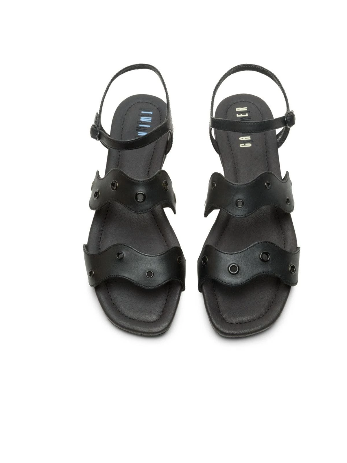 Black TWINS sandal for women. Leather Upper: Attaches by the ankle and open toe. 100% recycled TPU outsole.