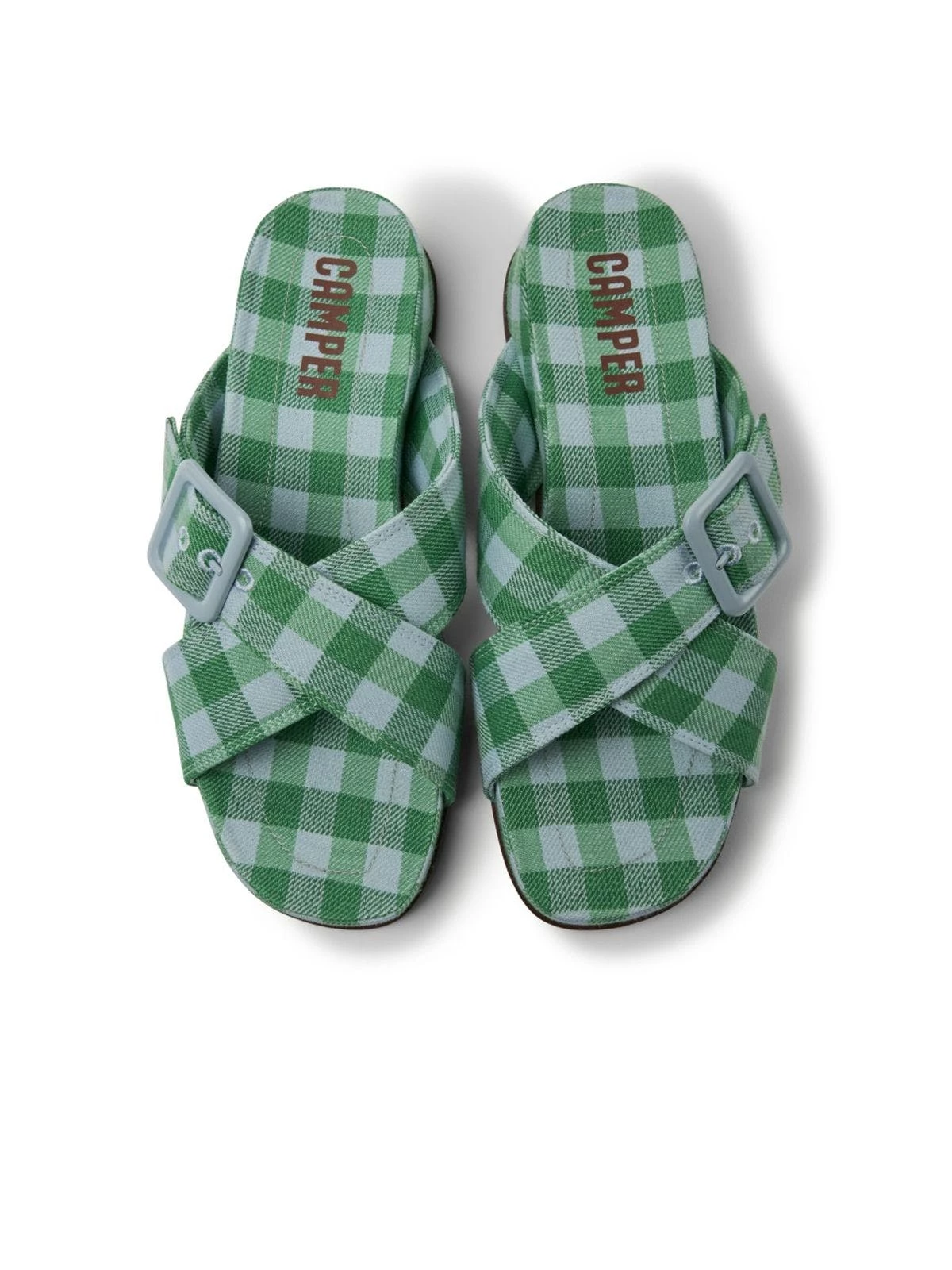 Blue and green recycled PET and recycled cotton women’s sandals with 100% rubber outsoles.With a laid-back approach to modern minimalism, this Atonik shoes offer various style and material combinations for every occasion.