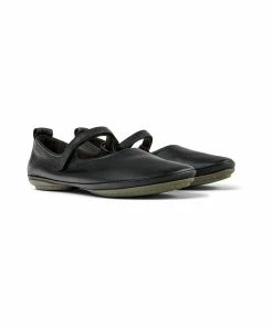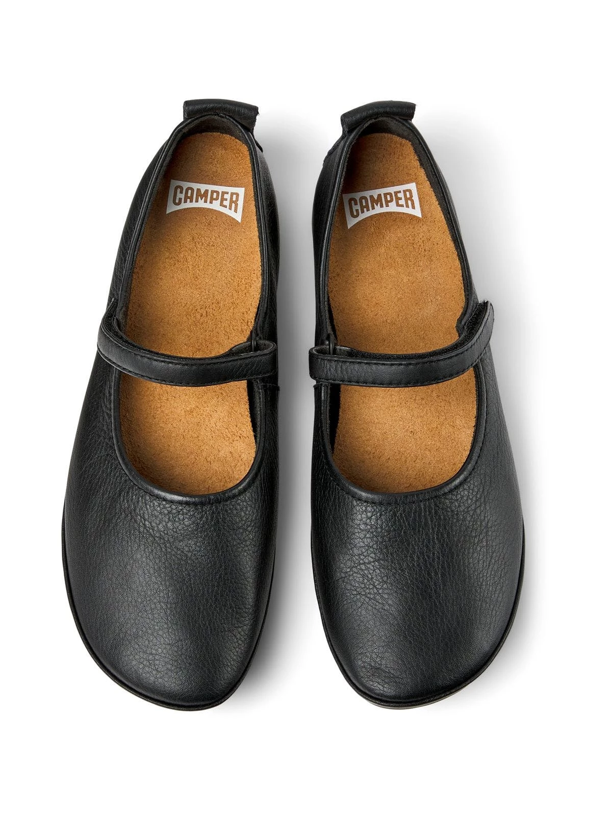 Black leather ballerina flats with removable Ethylene Vinyl Acetate footbeds and rubber outsoles (20% recycled).First launched in 2005, this Right combines the flexibility of ballerina slippers with the durable protection of street-ready rubber soles