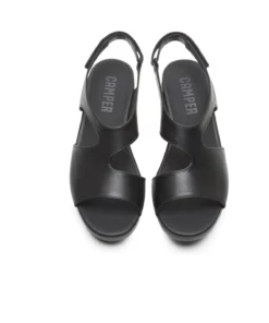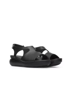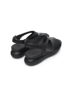 Black sandal for women. Leather upper with straps. Slingback with velcro and open toe. Black wedge outsole. The Balloon women’s sandals feature rounded outsoles that put a playful touch on a lightweight design.