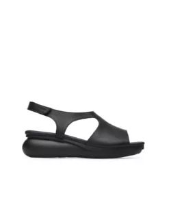Black sandal for women. Leather upper with straps. Slingback with velcro and open toe. Black wedge outsole. The Balloon women’s sandals feature rounded outsoles that put a playful touch on a lightweight design.