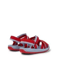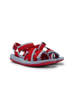 Red and blue women’s sandals with 100% recycled polyethylene terephthalate straps, ethylene vinyl acetate outsoles, and a hook-and-loop closing system. Match sandal is a testament to comfort and design simplicity with easy-fit straps made from 100% recycled polyethylene terephthalate and a lightweight outsole.